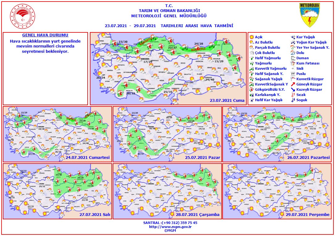 Meteoroloji’nin yayınladığı hava tahmin haritası şöyle;