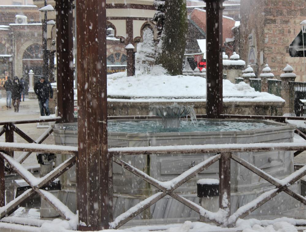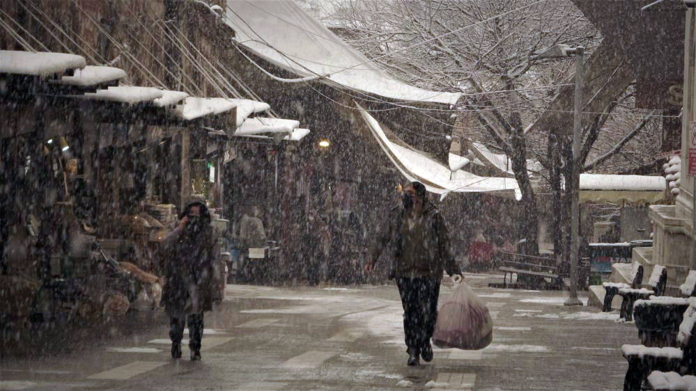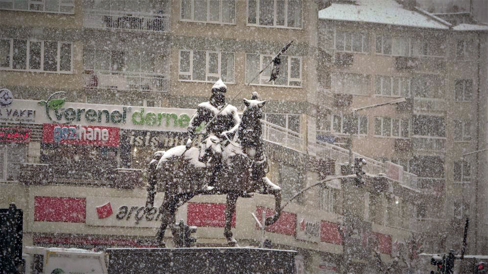 Vatandaşlar yoğun yağan karın altında yürüyerek keyfini çıkarttı. Şehrin simge yapıları ise yağan yoğun karla birlikte ayrı bir güzelliğe büründü.