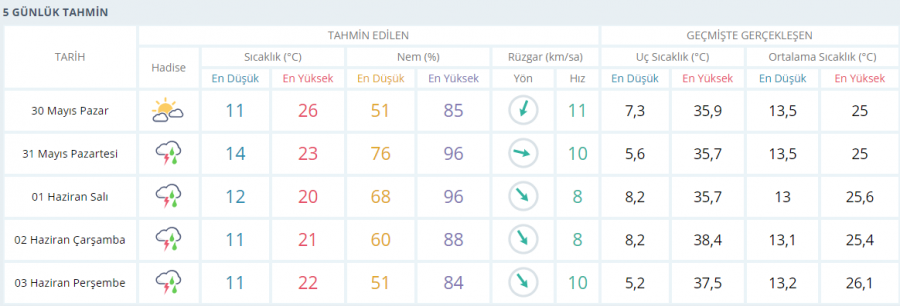 BURSA İÇİN 5 GÜNLÜK HAVA RAPORU