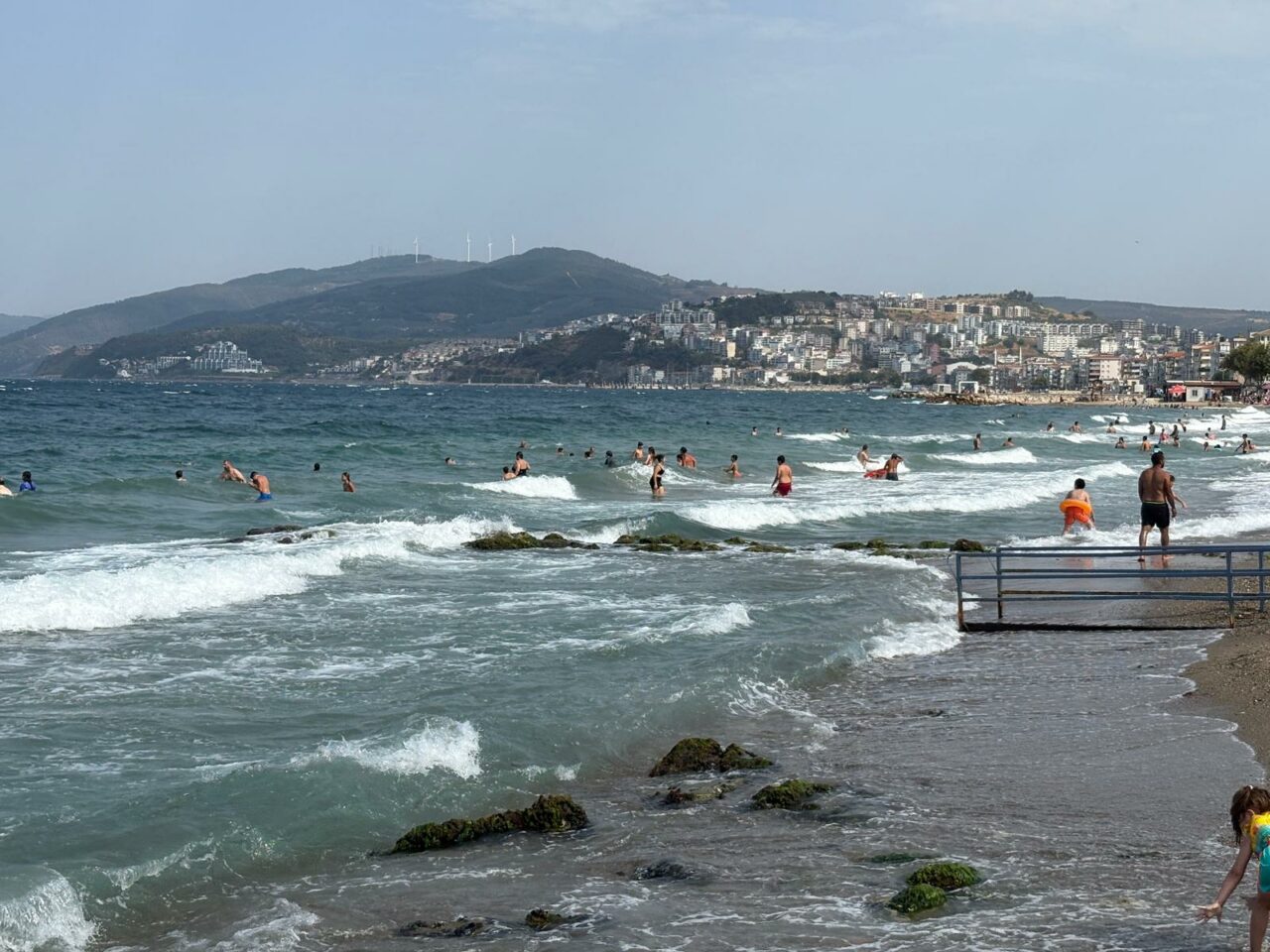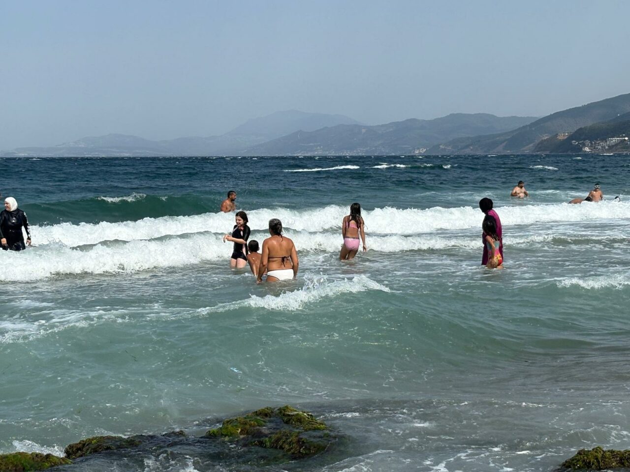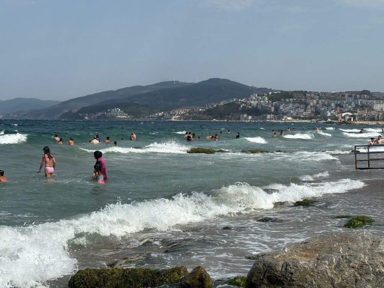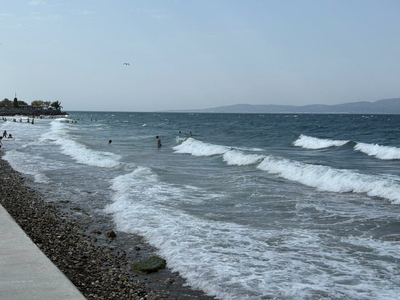 Rüzgarın etkisiyle denizde yoğun dalgalar oluşmasına rağmen bazı vatandaşlar denize girmekte ısrar etti.