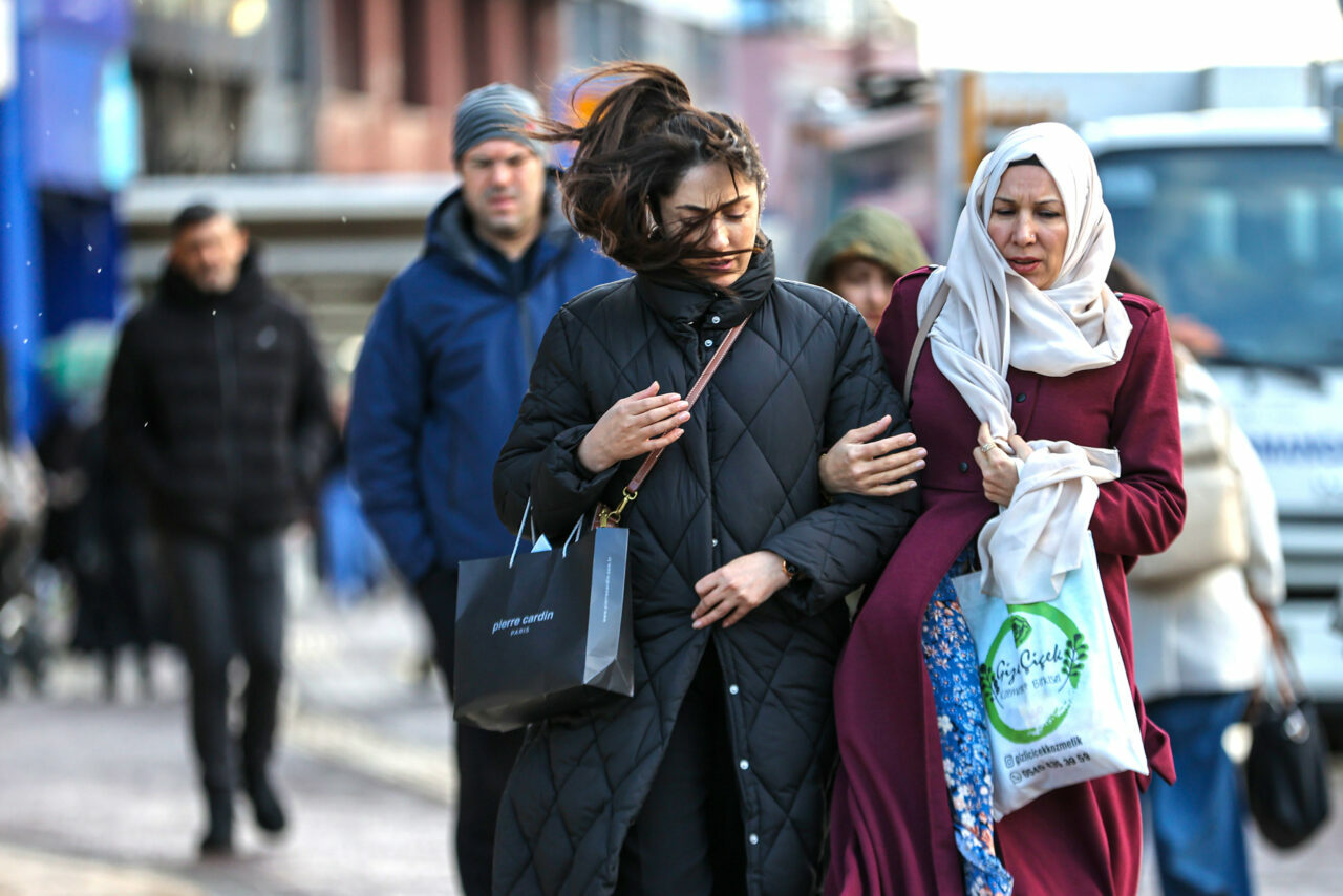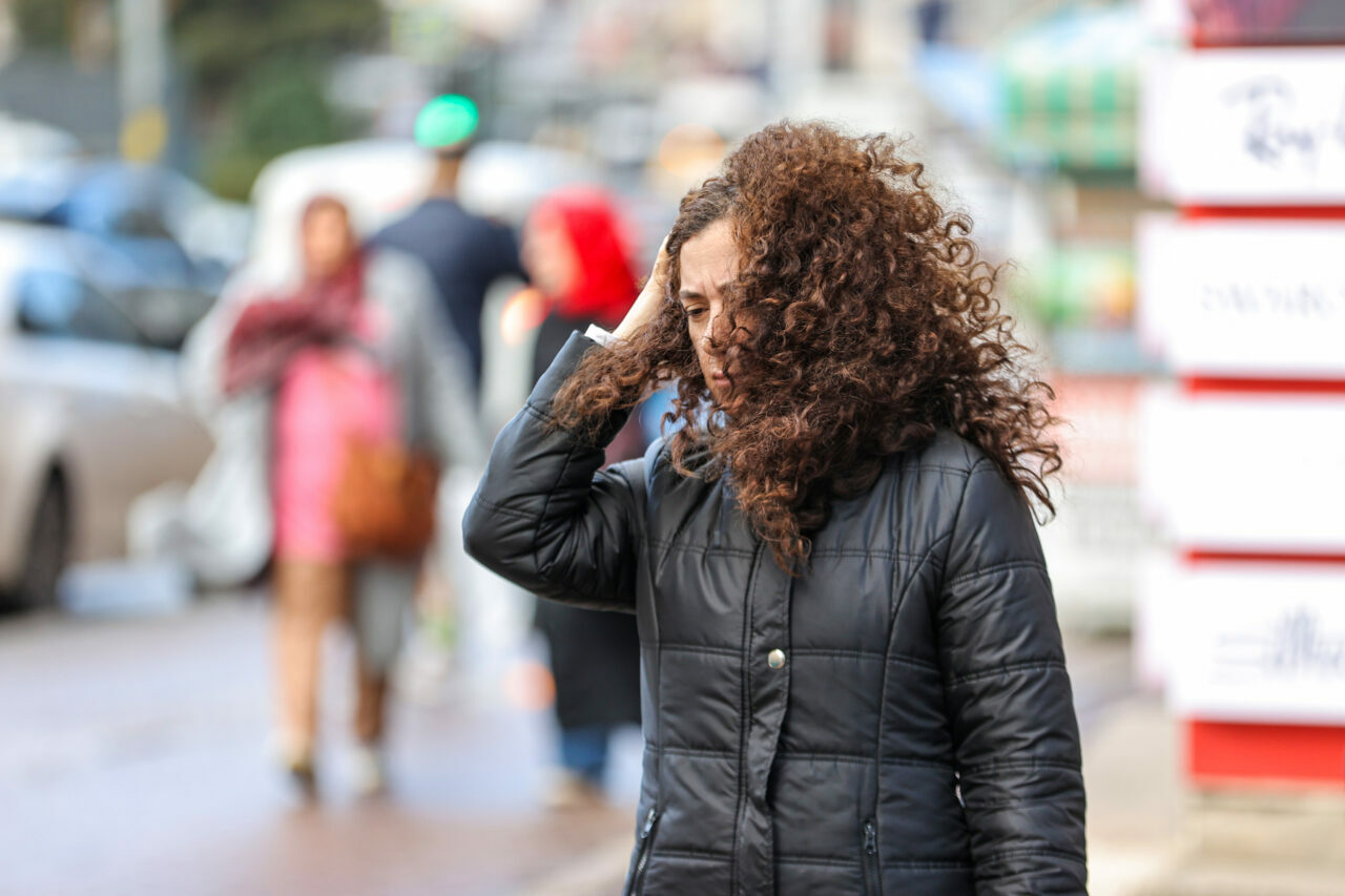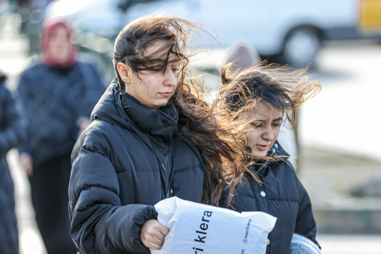 Hızı saatte 35 kilometreye kadar ulaşan rüzgarda vatandaşlar yürümekte zorlandı.