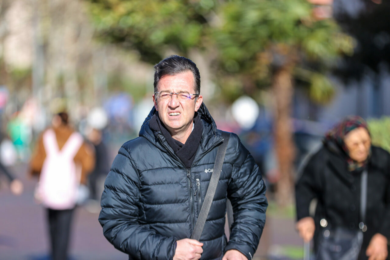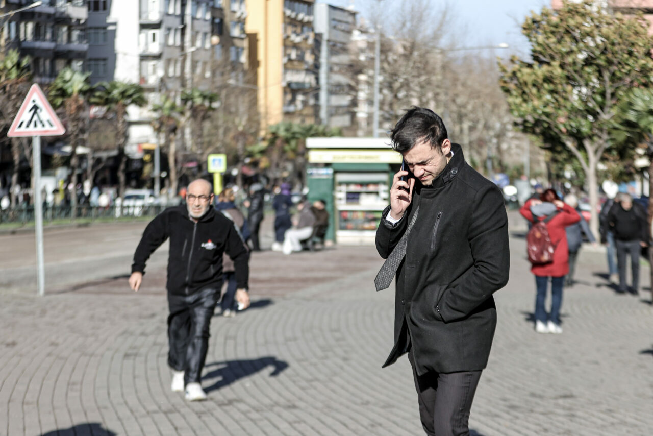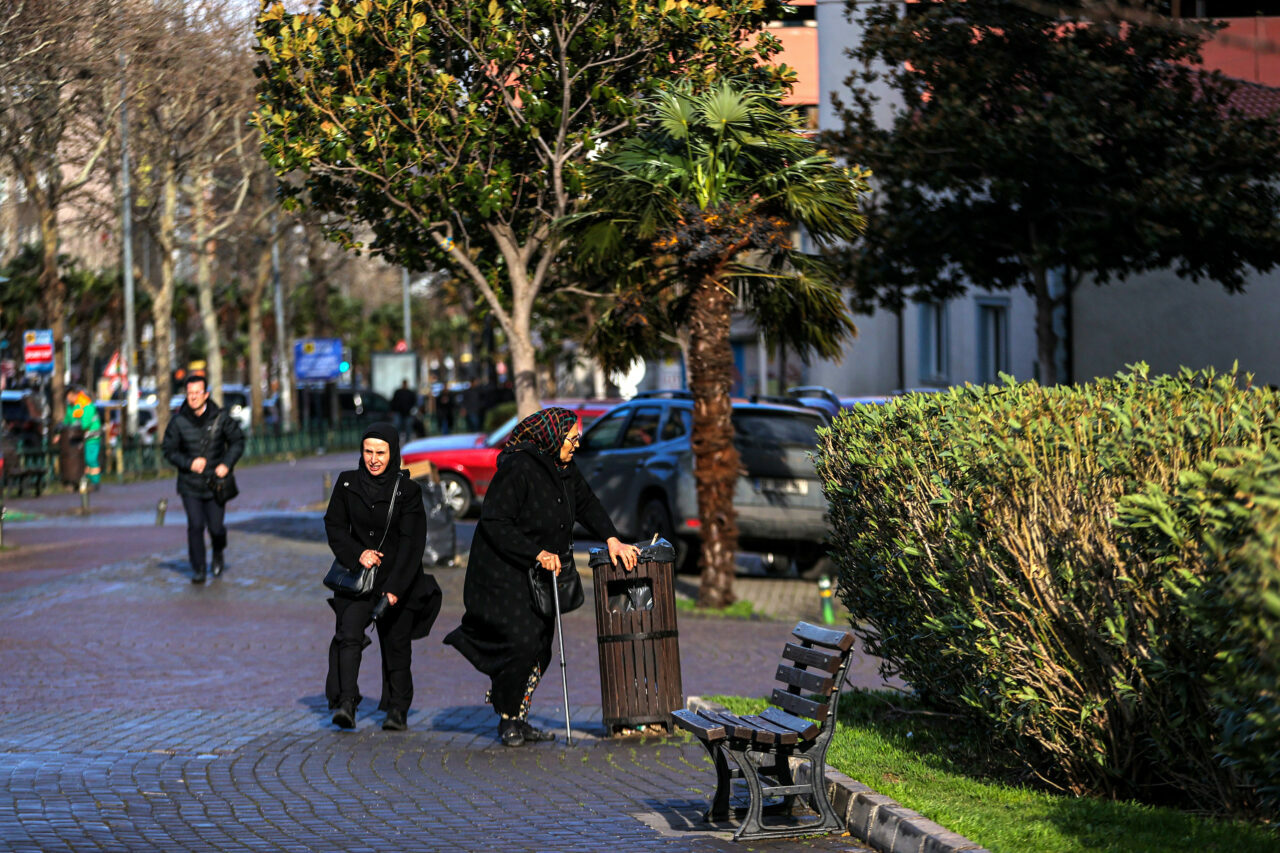 Hızı saatte 35 kilometreye kadar ulaşan rüzgarda vatandaşlar yürümekte zorlandı.