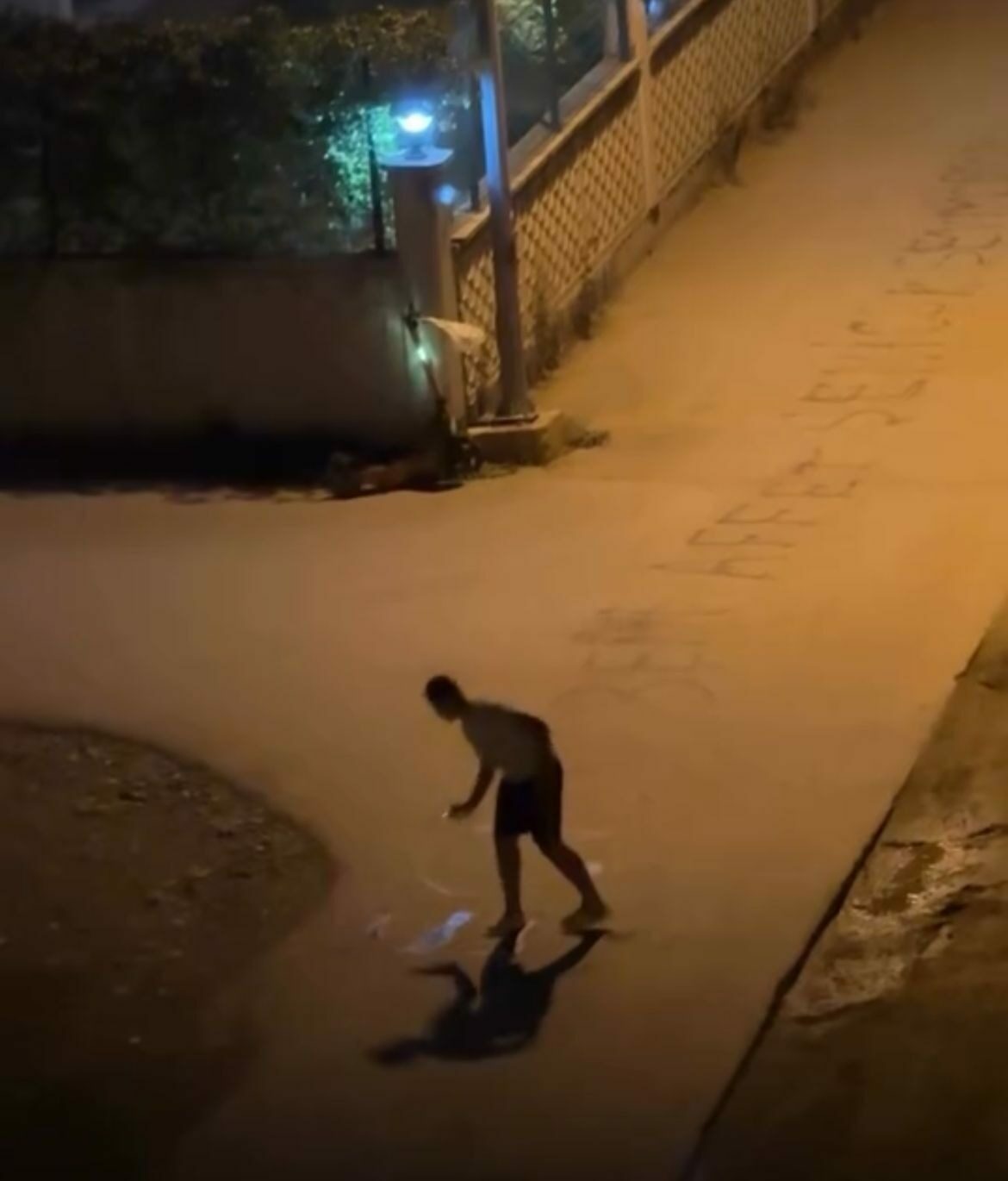 Kendisini affettirmek isteyen kişi, elindeki şişede bulunan sıvıyla sokağa ‘Ecrin beni affet seni çok seviyorum’ yazdı. Durumu gören mahalleli, yazının benzinle yazıldığı ve çakmakla ateşe verileceği düşüncesiyle 112 Acil Çağrı Merkezi’ni arayıp ihbarda bulundu. Adrese polis ekipleri sevk edildi. Yazıyı suyla yazdığı belirlenen kişi, bölgeden uzaklaştırıldı. O anlar, cep telefonu kamerasıyla görüntülendi.