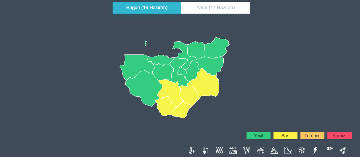 “Kısa süreli ve YEREL olmak üzere kuvvetli sağanak ve gök gürültülü sağanak yağış beklendiğinden sel, su baskını, yıldırım, yerel dolu yağışı, yağış anında kuvvetli rüzgar gibi olumsuzluklara karşı dikkatli ve tedbirli olunmalıdır.”