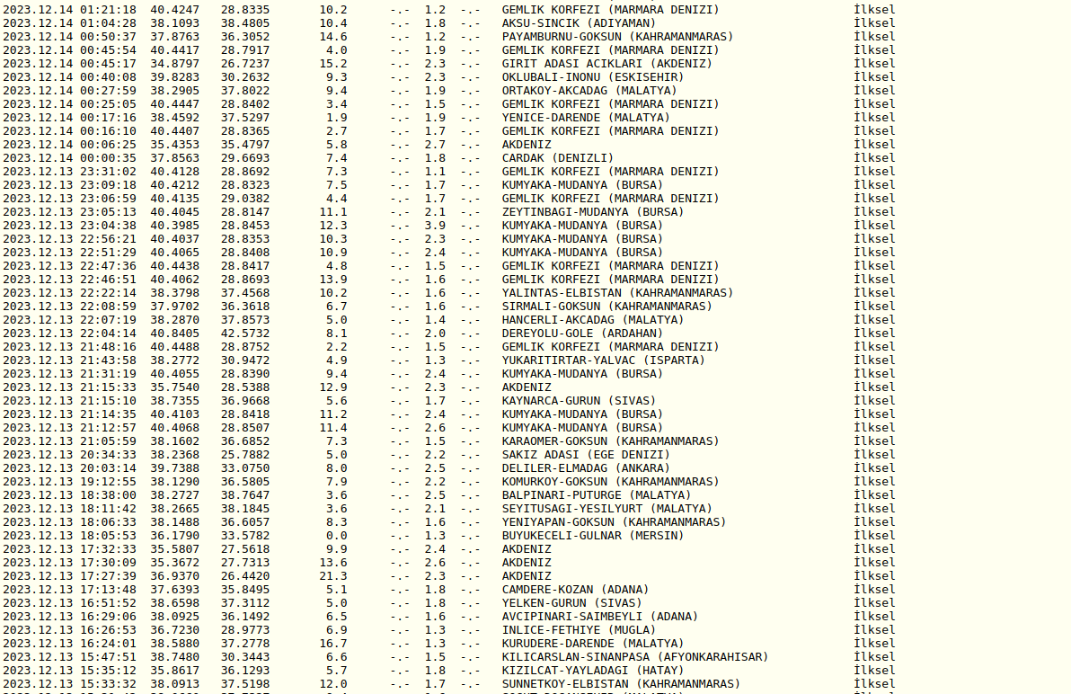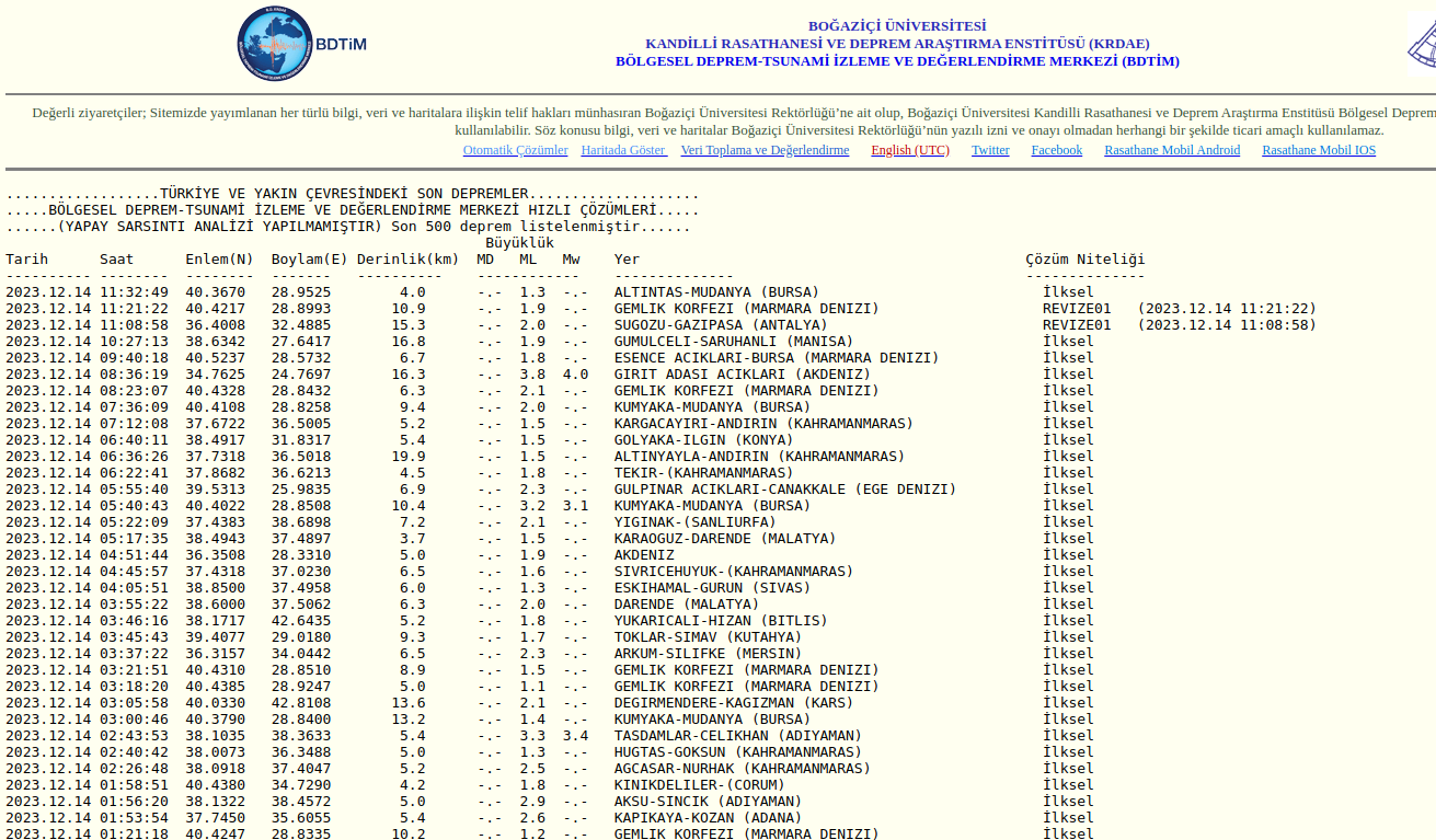 İşte Kandilli’nin tespit ettiği o sarsıntılar;