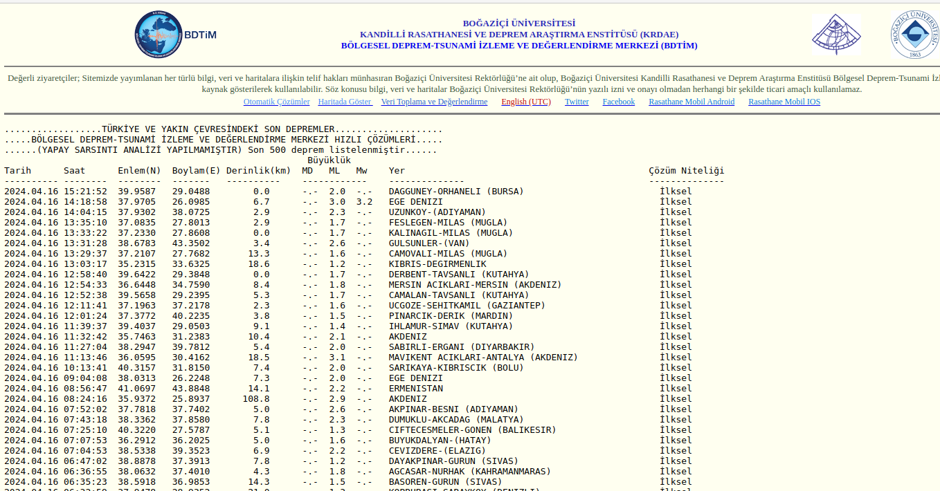 Kandilli Rasathanesi’nin son verilerine göre; Orhaneli ilçesi Dağgüney mevkindeki depremin şiddeti 2.0, derinliği 8 kilometre…