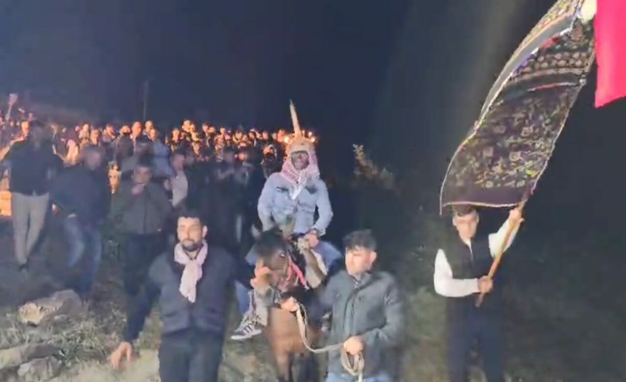 GELİN AT ÜSTÜNDE DÜĞÜN ALAYINA KATILDI