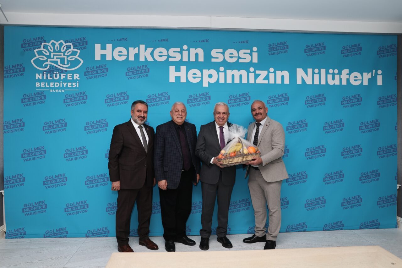 Nilüfer Belediye Başkanı Şadi Özdemir, Bursa Seyyar Pazarcılar Esnaf Odası Başkanı Ahmet Refik Aksu ile Bursa Yaymacılar ve Benzerleri Odası Başkanı Fahrettin Tüccaroğlu’yla birlikte Nilüfer Belediyesi Halk Evi’ndeki makamında bir araya geldi.