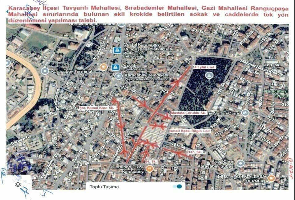 Bursa Büyükşehir Belediyesi Ulaşım Koordinasyon Merkezi (UKOME) Kurul kararı doğrultusunda, İlçe Emniyet Müdürlüğü iş birliğiyle Tavşanlı, Sırabademler, Gazi, Runguçpaşa ve Mecidiye mahallelerindeki bazı cadde ve sokaklarda tek yön trafik sistemine geçildi. Yeni düzenlemeyle dar sokaklarda yaşanan sıkışıklığın azaltılması, park sorunlarının önüne geçilmesi ve yaya güvenliğinin güçlendirilmesi hedefleniyor. Uygulamanın, Karacabey’in uzun vadeli ulaşım planının önemli bir parçası olduğunu belirten Belediye Başkanı Fatih Karabatı, sistemin elde edilecek veriler doğrultusunda ilçe genelinde yaygınlaştırılacağını ifade etti.