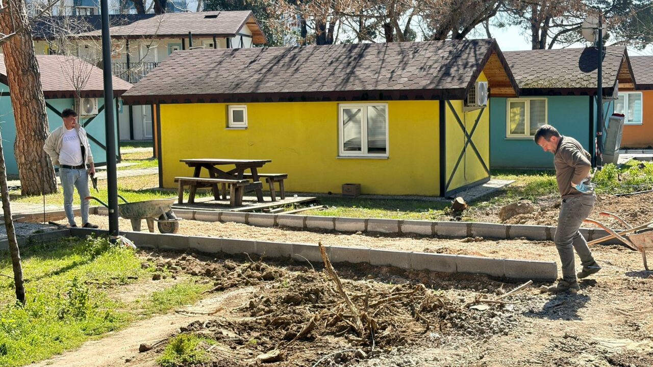 Karacaali Gençlik Kampı’ndan sahile uzanan yürüyüş yollarında da yenileme çalışmaları sürüyor.