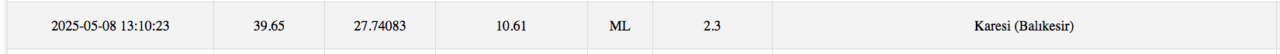 Afet ve Acil Durum Yönetimi Başkanlığının (AFAD) internet sitesinde yer alan bilgilere göre, bugün saat 08.47’de merkez üssü Balıkesir’in Karesi ilçesi olan 2,3 büyüklüğünde bir deprem meydana geldi.