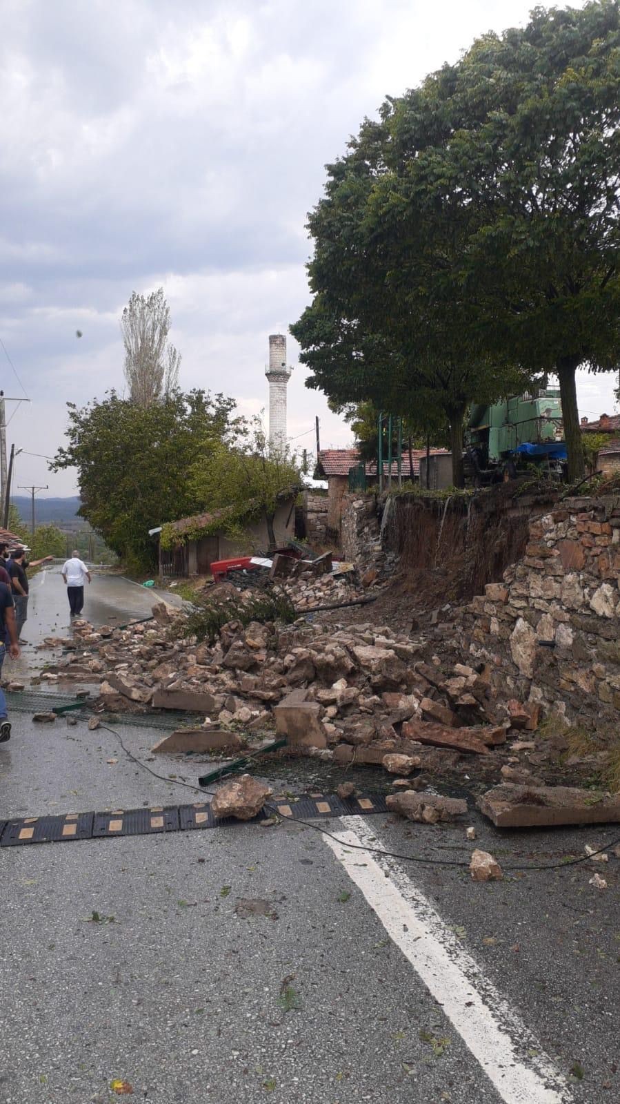 Bir caminin minaresi, rüzgar ve dolu sebebiyle yıkılırken, ilçenin birçok bölgesinde heyelan oluştu.
