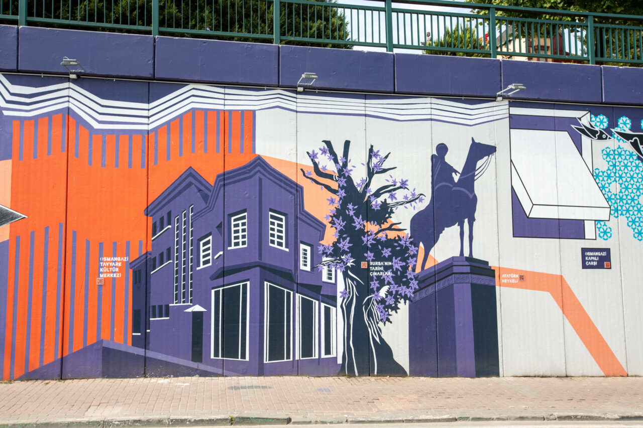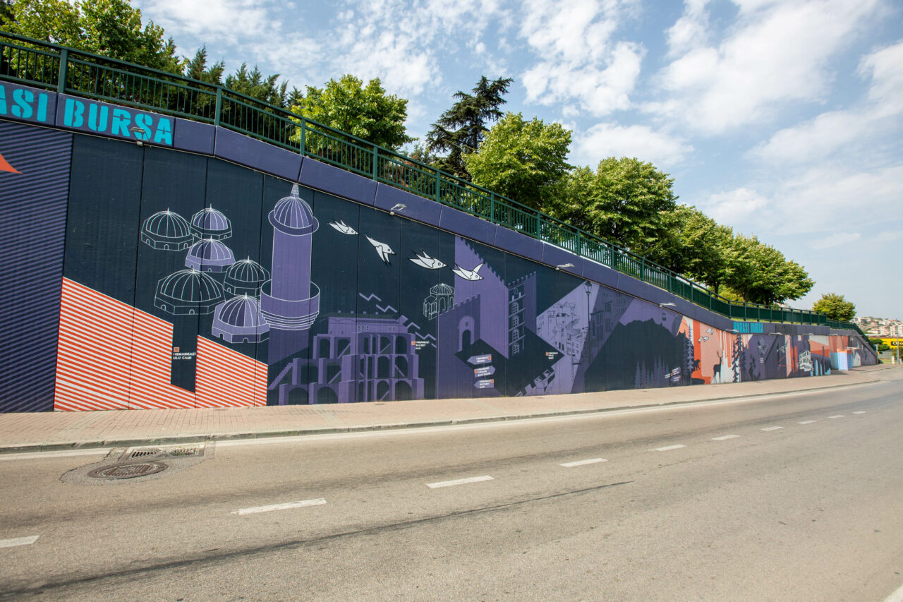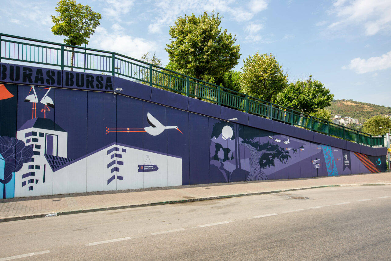 Kültürpark’ın kuzey tarafındaki 186 metre uzunluğunda yaklaşık 1000 metrekarelik duvara, 4 ressam ve 5 boya ustasından oluşan sanat ekibi tarafından Gölyazı, Atatürk anıtı, Irgandı Köprüsü, İnkaya Çınarı, Ulu Cami, Yeşil Türbe, Hacivat ve Karagöz figürleri gibi Bursa’ya ait değerler işlendi. Çalışmayla kente ait önemli yapılar ve doğal güzellikler sanatsal bir kompozisyonla duvara yansıtıldı.