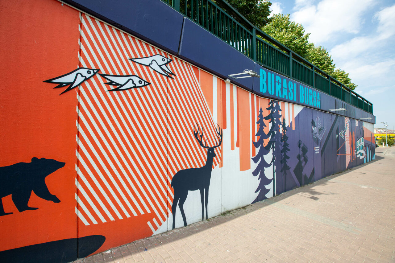 Demirtaşpaşa Kavşağı duvarlarında ise yaklaşık 1200 metrekare Uludağ’ın doğal bitki örtüsünde yer alan ve sadece Uludağ’da yaşayan 20 çeşit bitki ve 10 çeşit hayvanın anlatıldığı boyama çalışması tamamlandı. Eser, Bursa Uludağ Üniversitesi Fen Edebiyat Fakültesi Biyoloji Bölümü öğretim üyesi Prof. Dr. Gönül Kaynak’ın ‘Bursa Bitkileri’ kitabından yararlanılarak hazırlandı.
