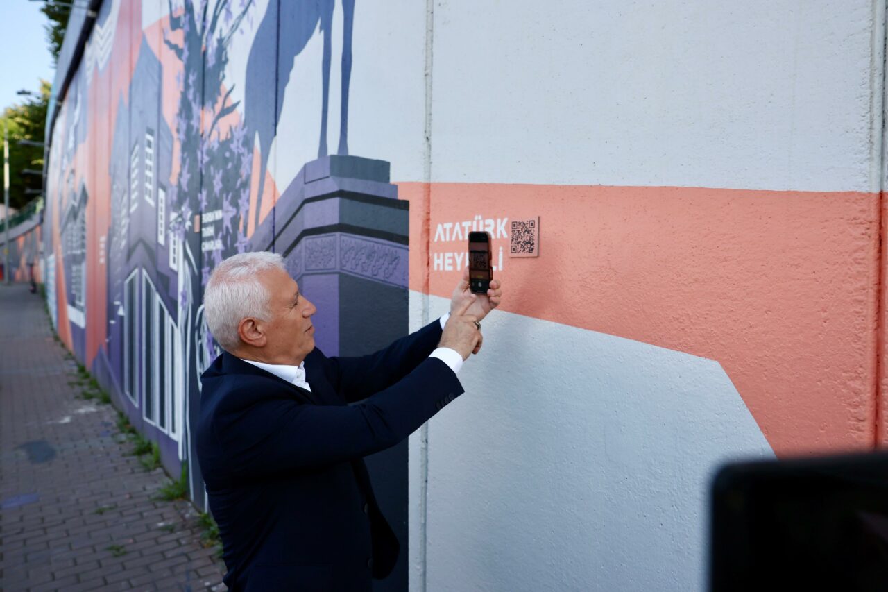 Kültürpark’ın kuzey duvarında çok anlamlı bir çalışmaya imza atıldığını söyleyen Başkan Mustafa Bozbey, Bursa’ya ait değerlerin 1000 metrekarelik alana sahip olan duvara işlendiğini belirtti. Tarihi Belediye Binası’ndan Irgandı Köprüsü’ne kadar birçok eserin resmedildiğini ifade eden Başkan Bozbey, “Bursa’nın değerlerini, kente gelen misafirlerimize tanıtma noktasında kentin farklı noktalarında duvar sanatı projeleri başlattık. Yapılan eserlerin altında QR kodları da yer alıyor. İsteyen herkes bu kodu telefonunda okutarak resmedilen tarihi eserin bilgilerini Türkçe ve İngilizce öğrenebiliyor. Bu çalışmayla Bursa’nın tanıtımına önemli bir katkı sağlamış oluyoruz. Emeği geçenlere teşekkür ediyorum” dedi.