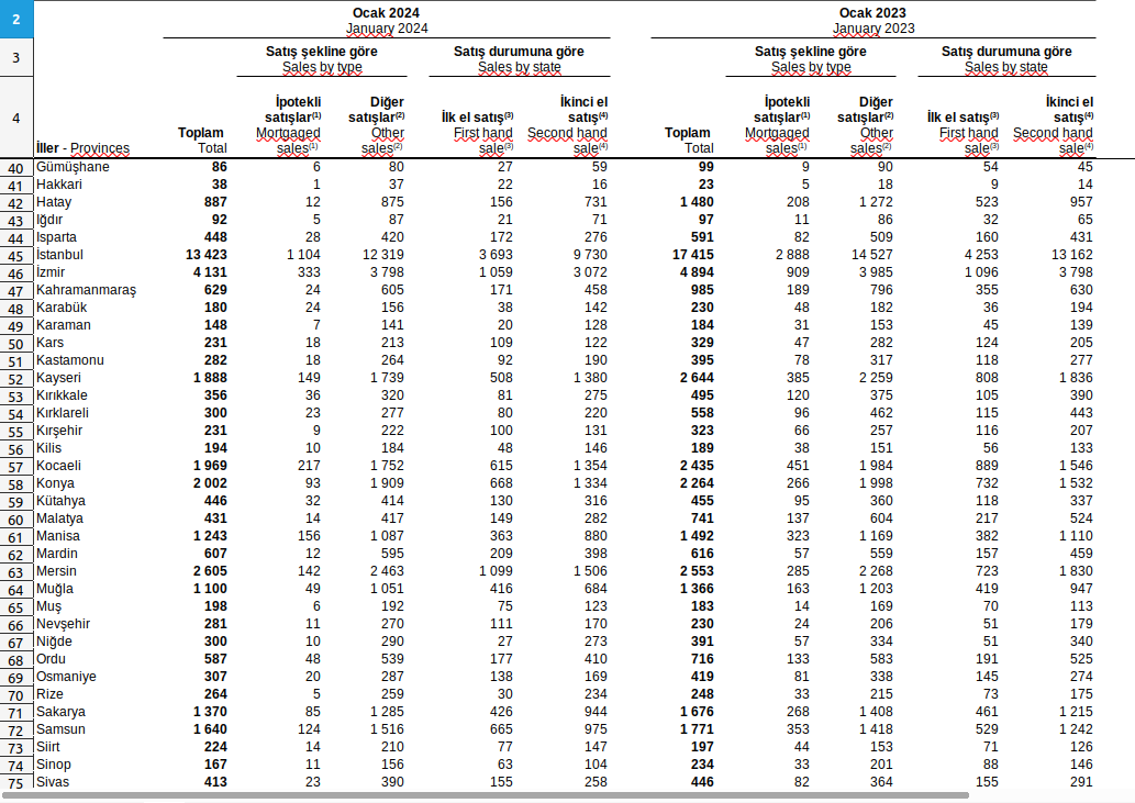 2023 Ocak ayında 3 bin 559 konut satışı olan Bursa’da Ocak 2024’te rakam yüzde 14.4 düşüşle 3 bin 47’ye indi…