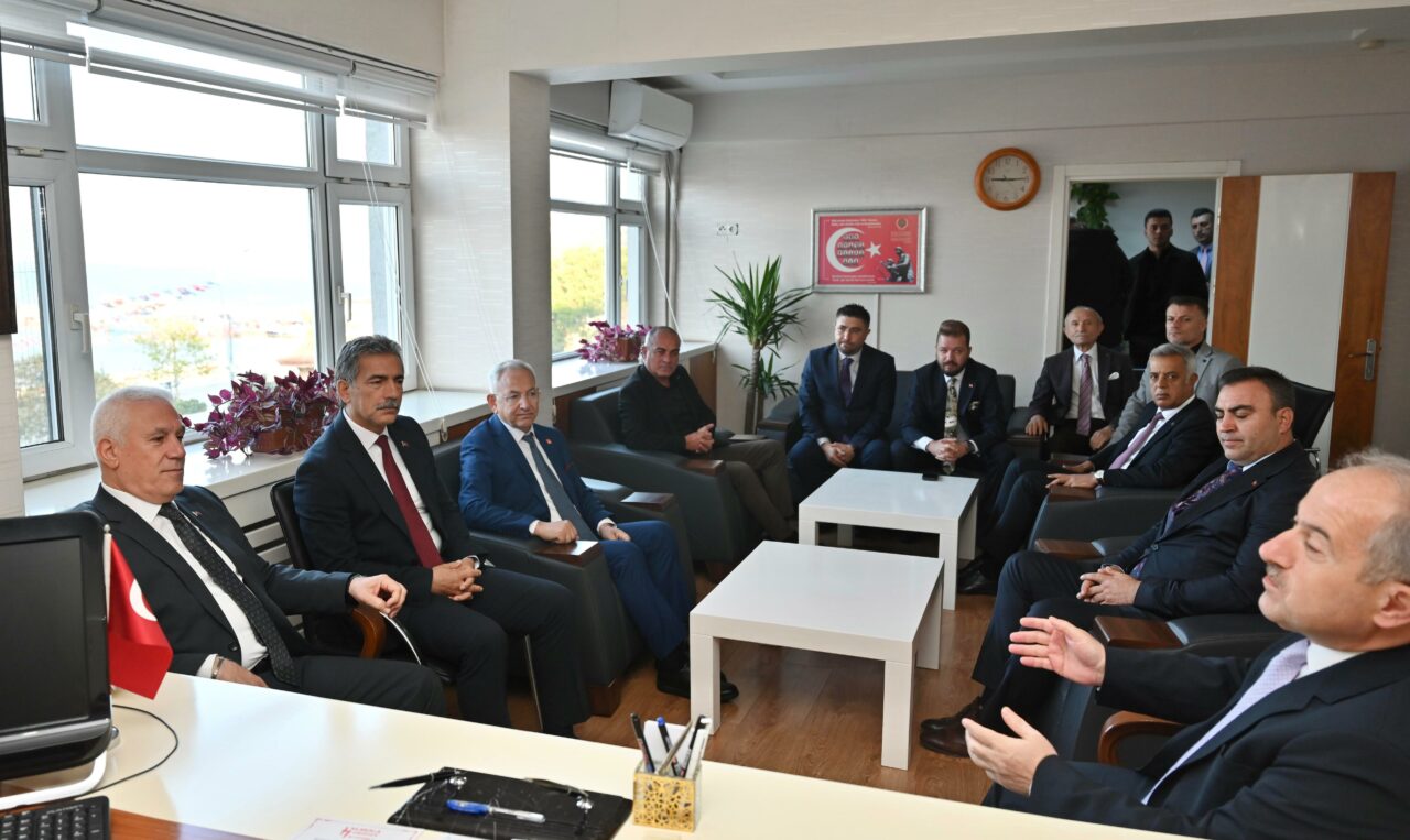 Gemlik Ticaret Borsası ve Gemlik Ziraat Odası’na yapılan ziyarette ise Gemlik’in körfeziyle birlikte ticaretin kalbi noktasına gelebilmesi için geliştirilen projeler değerlendirildi.