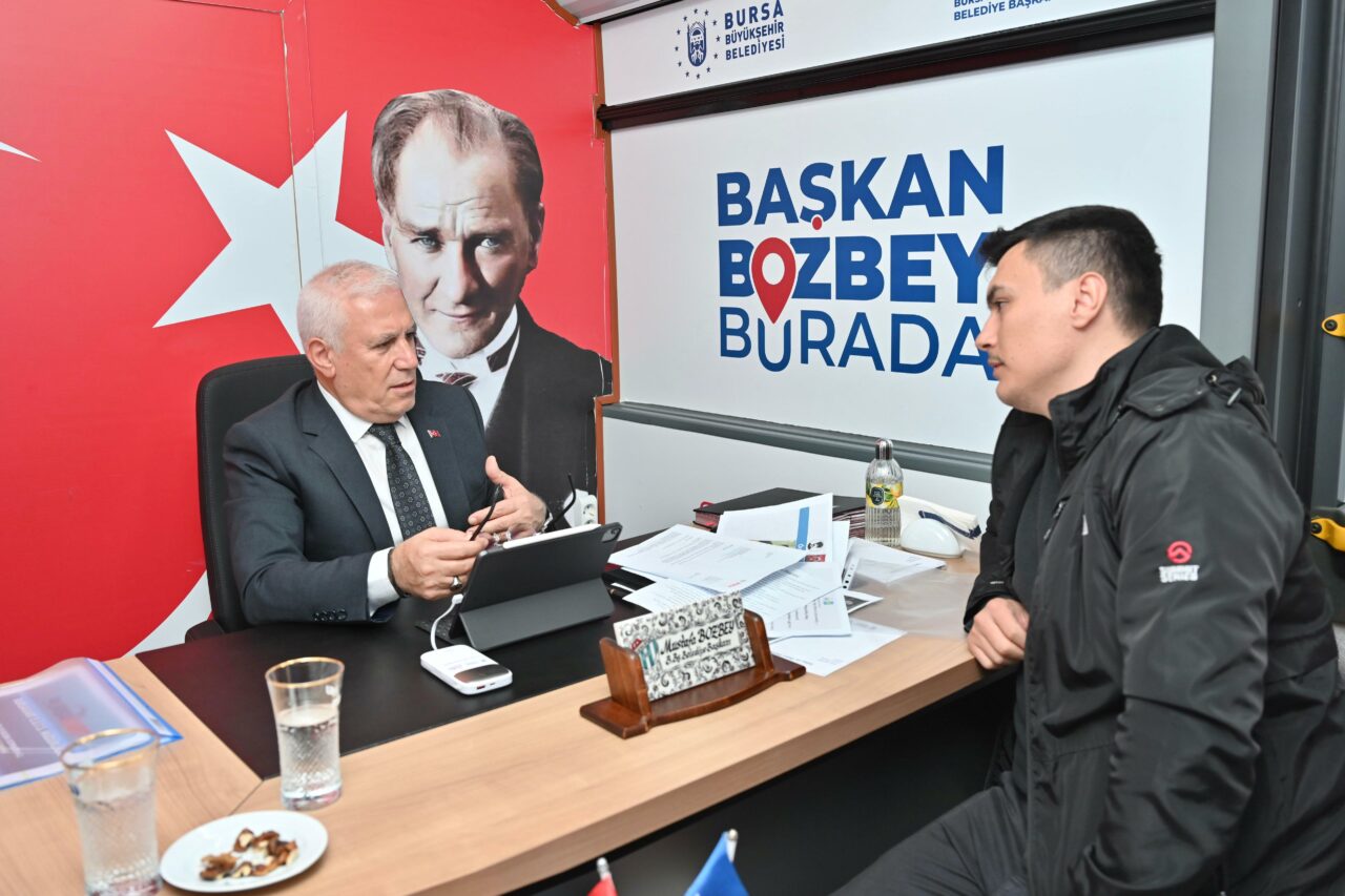 Bursa Büyükşehir Belediye Başkanı Mustafa Bozbey’in 15 günde bir farklı bir ilçede halkla bir araya gelip talep ve önerilerini dinlemek, sorunları yerinde tespit edip hızlı çözümler üretmek amacıyla başlattığı ‘Başkan Bozbey Burada’ projesi, tüm hızıyla sürüyor.