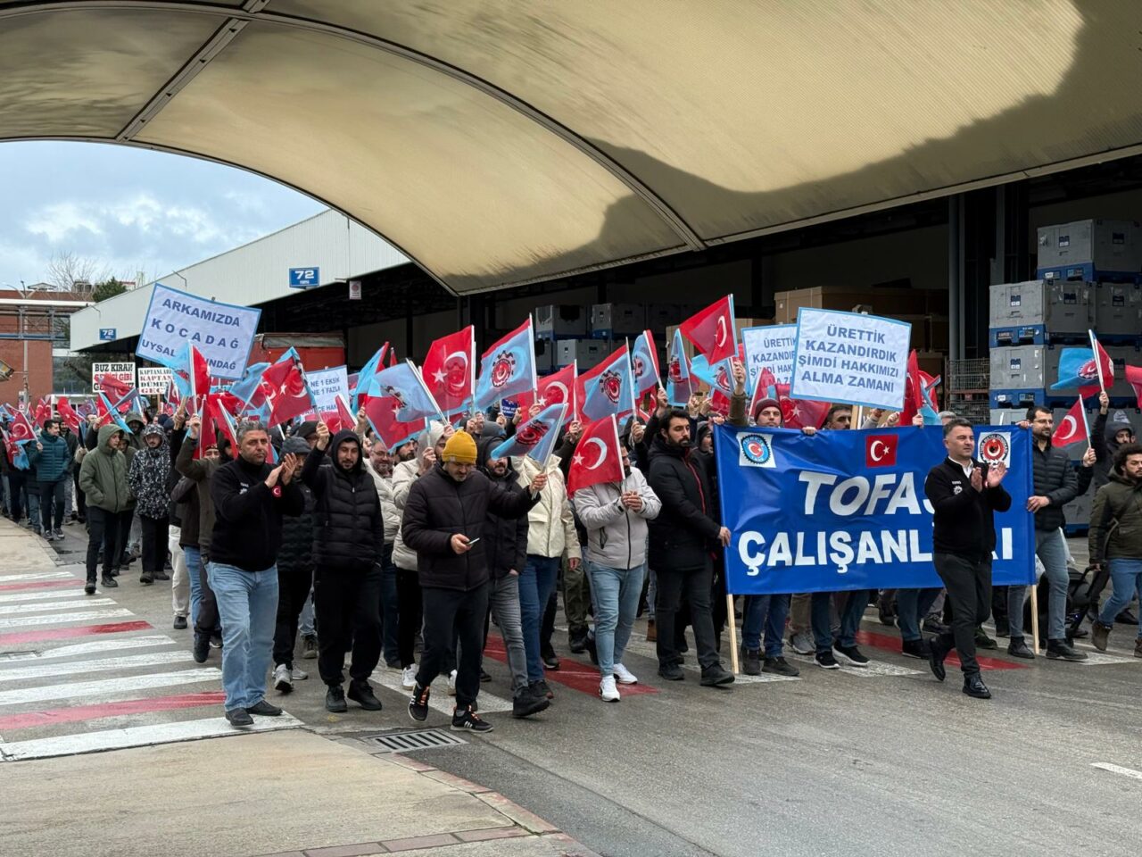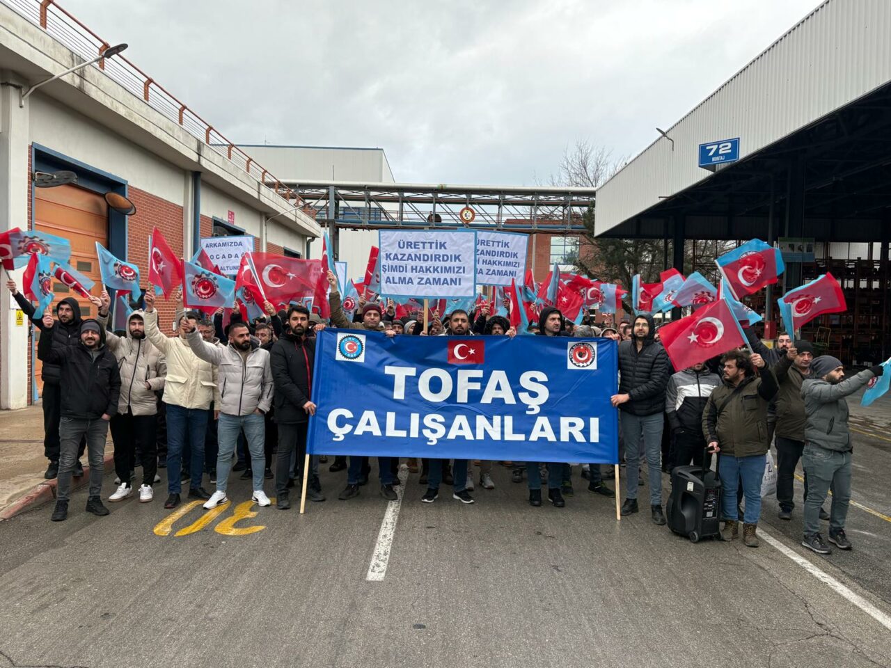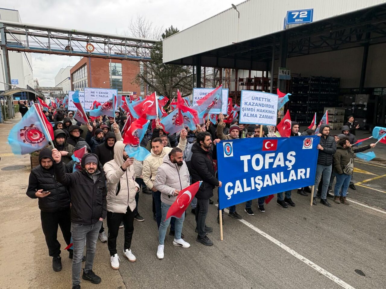 Bursa’nın en büyük sanayi kuruluşlarından biri olan TOFAŞ’ta, toplu iş sözleşmesi görüşmelerinin tıkanması üzerine çalışanların eylemi devam ediyor. Türk Metal Sendikası ile işveren sendikası MESS arasında yürütülen ve 2025–2027 dönemini kapsayan toplu iş sözleşmesi görüşmelerinde uzlaşma sağlanamaması, fabrikada tepkileri beraberinde getirmişti.