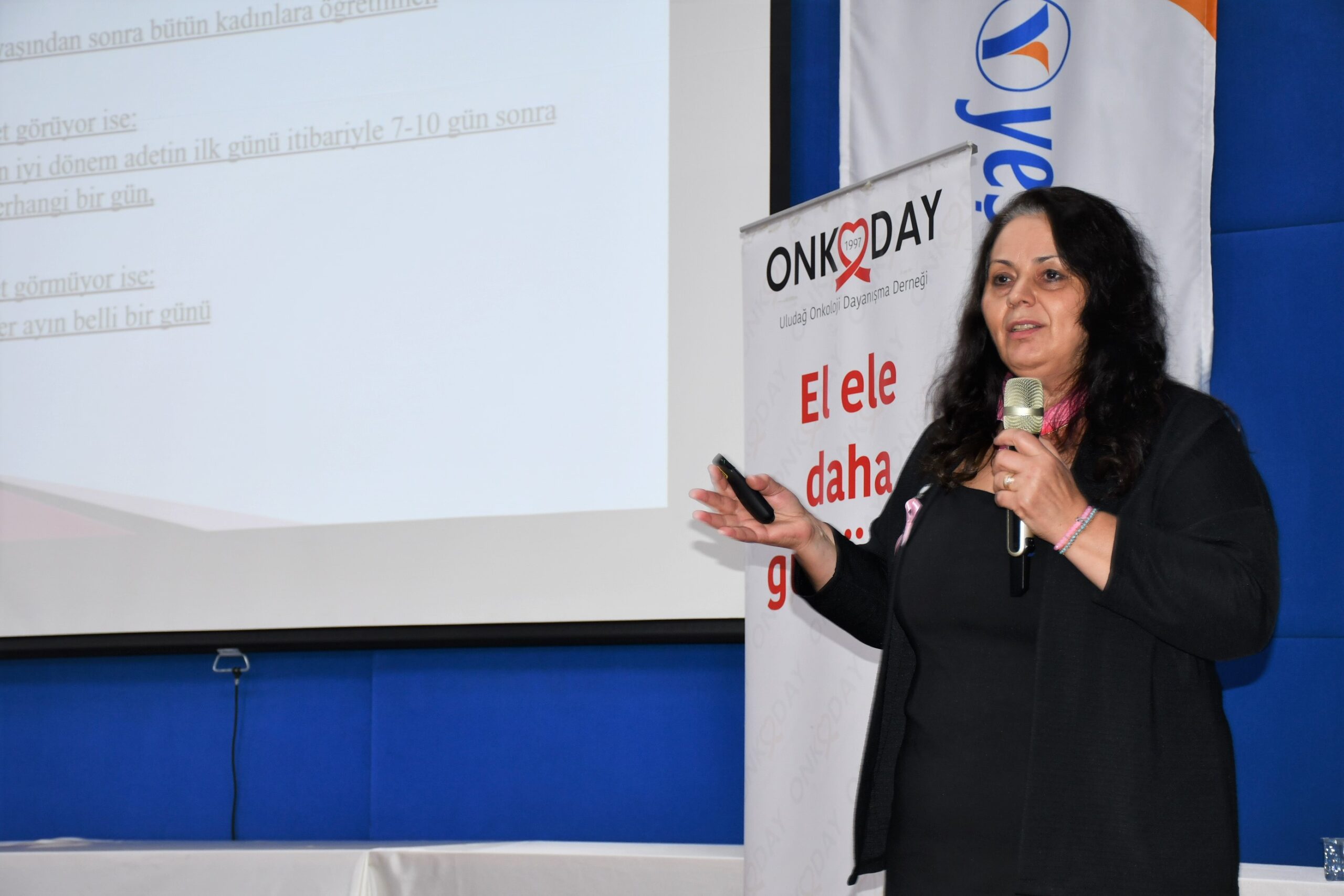 Uludağ Onkoloji Dayanışma Derneği (ONKODAY) iş birliğiyle düzenlenen programa SBÜ Bursa Yüksek İhtisas Eğitim Araştırma Hastanesi Tıbbi Onkoloji Uzmanı Dr. Birol Ocak ve Bursa İl Sağlık Müdürlüğü’nden Hemşire Elif Pişkin konuşmacı olarak katıldı. Programın konuk konuşmacıları, meme kanserinde teşhis ve tedavi yöntemleriyle ilgili katılımcıları bilgilendirdi.