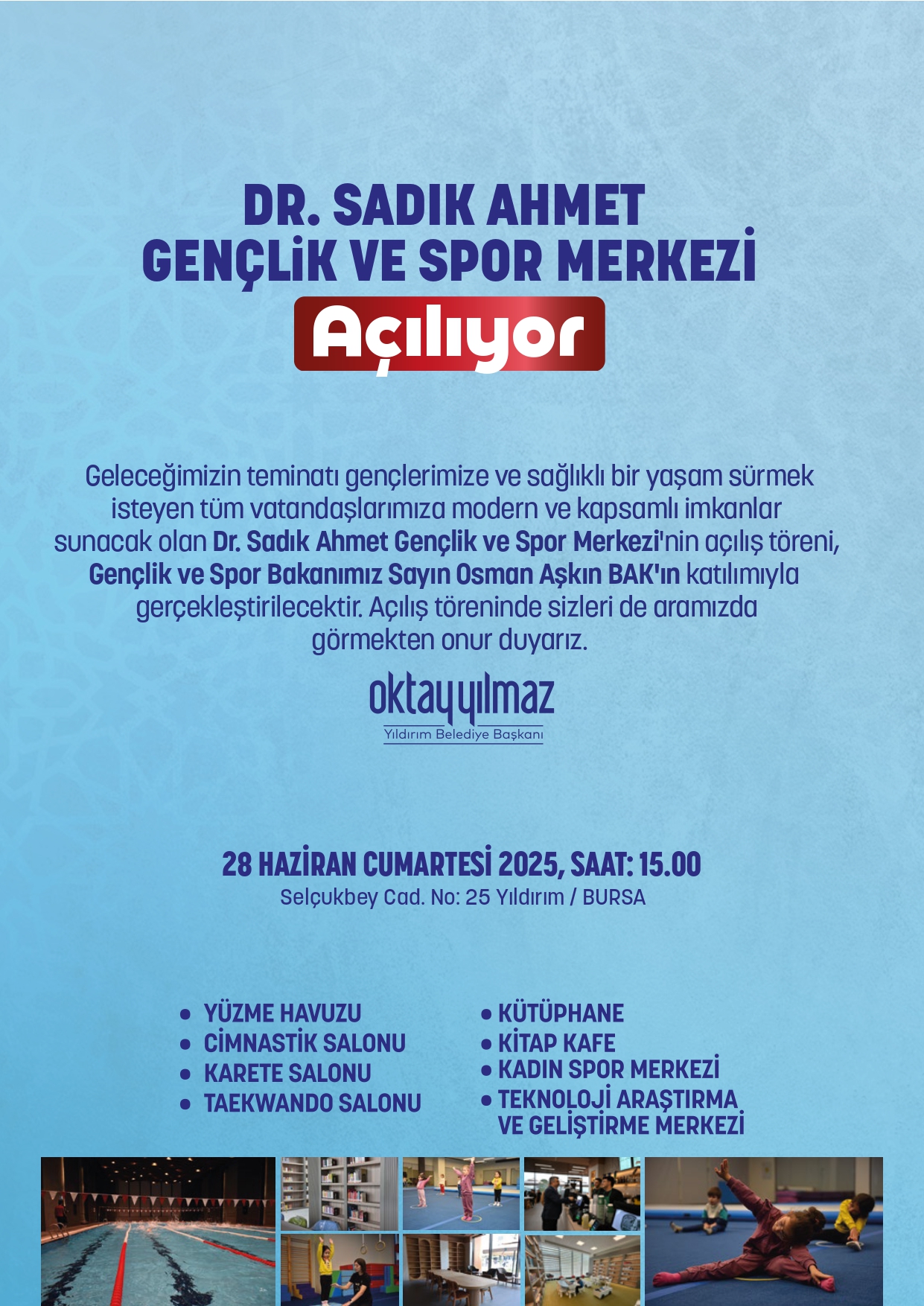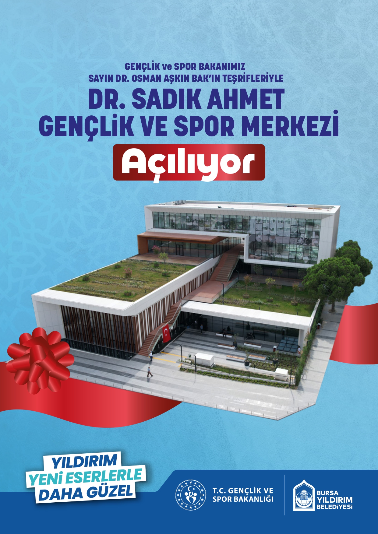 Gençlik ve Spor Bakanımız Sayın Dr. Osman Aşkın Bak’ın teşrifleriyle; Dr. Sadık Ahmet Gençlik ve Spor Merkezimizin resmi açılışını gerçekleştiriyoruz.