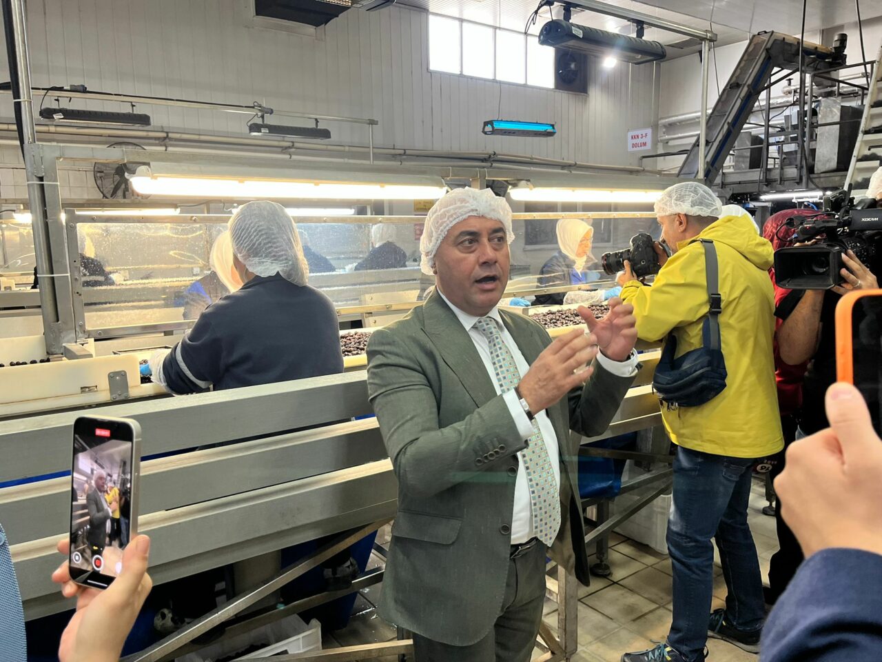 Marmarabirlik Entegre Tesisi’nde düzenlenen tanıtım turunda, gazetecilere zeytinin hasattan sofraya uzanan yolculuğu aktarıldı.