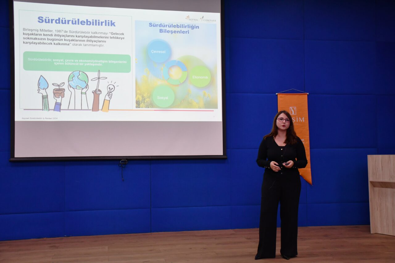 “Benim Seçimim Gerçekten Bir Fark Yaratabilir mi?” temasıyla düzenlenen söyleşide ilk olarak Sofra/Compass Grup Türkiye Sürdürülebilirlik Müdürü Ayla Göksu, “Ekolojik Yaşamın Temelleri ve Yemek Seçimlerinin Karbon Ayak İzini Azaltmadaki Etkileri” başlıklı sunumuyla karbon ayak izini azaltmaya yönelik bireysel alışkanlıkların önemini vurguladı. Ardından Sofra/Compass Grup Türkiye Ülke Diyetisyeni Emel Arslan, “Sürdürülebilirlik ve Optimum Sağlık için Neler Yapmalıyız?” başlıklı sunumuyla gıda kaynaklı karbon salınımının boyutlarını aktararak sağlıklı beslenme alışkanlıklarının çevresel faydalarına dikkat çekti.