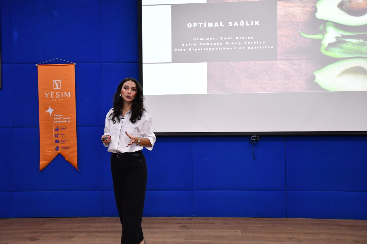 Yeşim Grup, Sofra/Compass Grup Türkiye iş birliğiyle Sürdürülebilirlik Ayı kapsamında eğitici bir etkinlik düzenledi. Büyük Konferans Salonu’nda yoğun katılımla gerçekleşen etkinlik, “Benim Seçimim Gerçekten Bir Fark Yaratabilir mi?” temasıyla Yeşimlilere sürdürülebilir yaşam ve sağlıklı beslenme konusunda farkındalık kazandırmayı hedefledi.