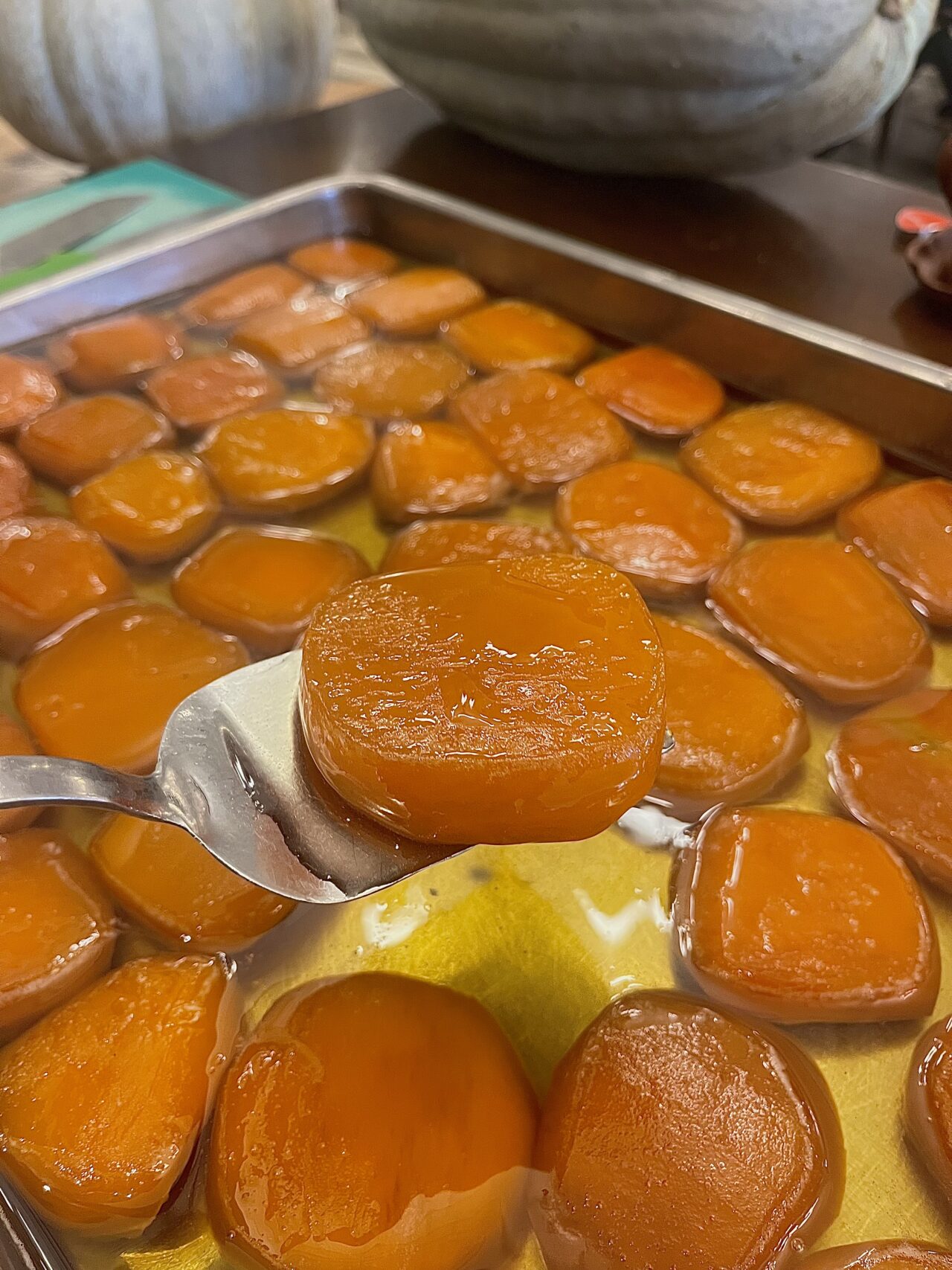 Püf noktaları ise şöyle: Muhtarın Yeri’nde kabak tatlısı sadece mevsiminde yapılıyor. Kabağın güzel olduğunu anlamak için kabuğuna bakmamız şart. Dış kısmının sert olması gerekiyor. İşlemler; kesim, şekillendirme, marinasyon ve pişirme işlemleri olarak aşamadan geçiyor…