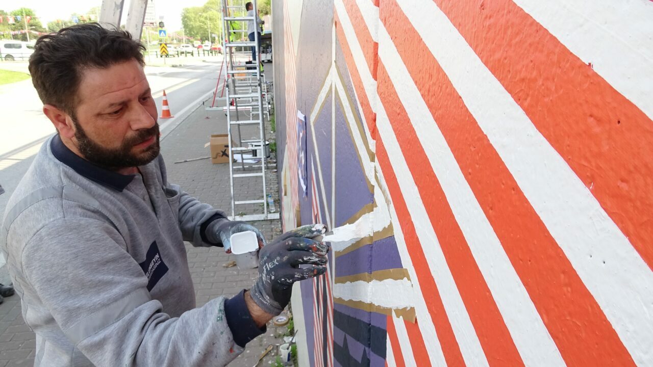 “Bursa’ya ait doğal, tarihi ve kültürel güzelliklerin ön plana çıkarıldığı, soyut bir duvar çalışması gerçekleştiriyoruz. Kamusal alandaki estetik çalışmaların en önemli özelliği, çok daha fazla insana kısa sürede ulaşması. Kentimizin önemli bir noktasında, ciddi geçiş yoğunluğu olan bir bölgede gerçekleştirdiğimiz bu çalışmada, Bursa’ya ait önemli figürleri duvarımıza taşıdık. Atatürk Heykeli, Bursa’nın tarihi belediye binası, Tayyare Kültür Merkezi, Irgandı Köprüsü, İznik’in Bazilikası, Baba Sultan Türbesi, Eski Karaağaç, Gölyazı, Cumalıkızık, UNESCO alanlarımız, Karagöz ve Hacivat gibi Bursa ile özdeşleşmiş pek çok öğe duvara işlendi. Çalışmanın tasarımı sanatçı Tuba Okat’a ait. Uygulaması ise şube müdürlüğümüzün çalışanları tarafından yapılıyor. 5 kişilik boyama ekibimiz ve 4 ressam arkadaşımız yaklaşık 1 aydır alandaki çalışmalarını sürdürüyor.”