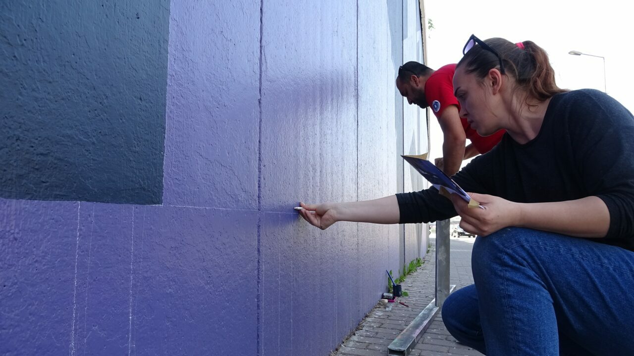 Duvar resminin dayanıklılığını koruması ve renklerin canlı olması için akrilik boyaların kullanıldığını belirten Temur, “Elimize tasarımı alıp önce duvara bakıyoruz, ardından hangi tasarımı nereye yerleştirebileceğimizi belirliyoruz. Göz kararıyla yerleştirdiğimiz şemayı, cetvel ve metre gibi aletlerle ölçeklendirerek çiziyoruz. Kalemle yapılan çizimlerin ardından boyama aşamasına geçiliyor. Bazen detaylara geri dönmek gerekebiliyor. Kullandığımız dış cephe boyaları, güneş, rüzgar ve yağmur gibi hava şartlarına dayanıklı olarak üretiliyor. Yaptığımız resimler hava koşullarına bağlı olarak yaklaşık 5 yıl canlılığını koruyabiliyor. Ancak dış etkenlerden korunmuş alanlarda 10 yıl ve daha uzun süre canlı kalan çalışmalarımız da oldu” diye konuştu.