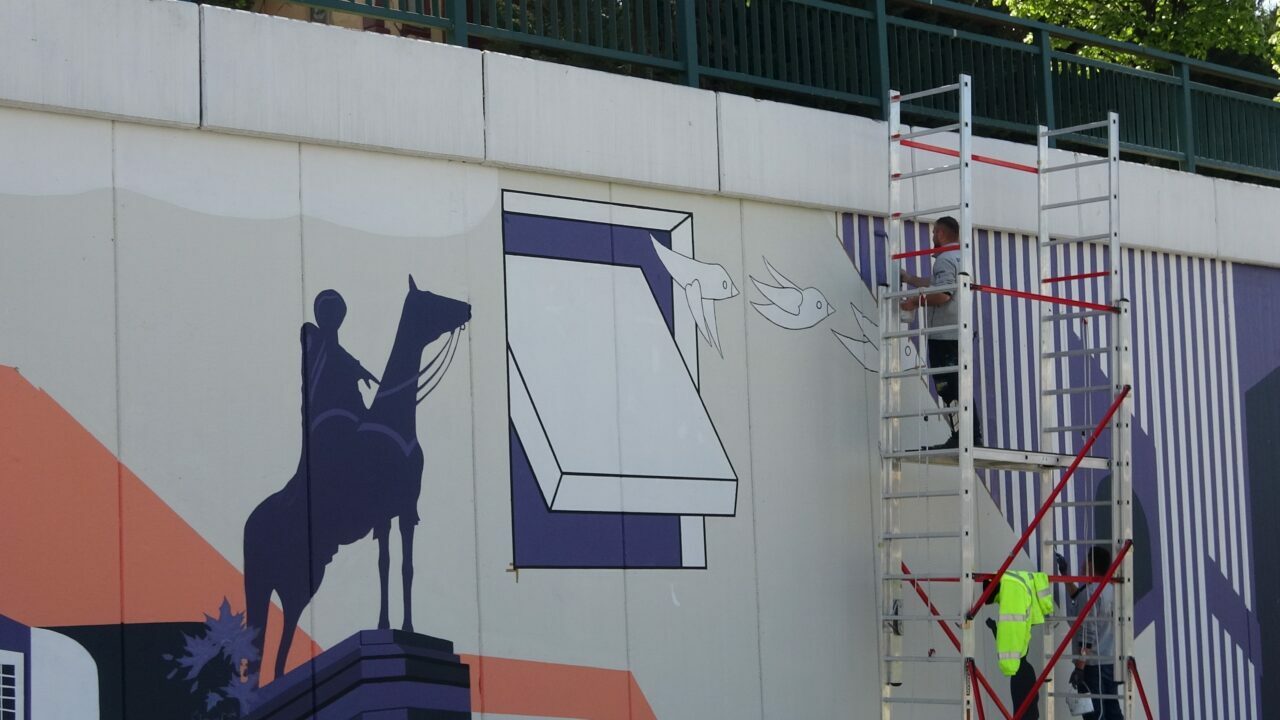 Bursa Büyükşehir Belediyesi Park ve Bahçeler Dairesi Başkanlığı tarafından ‘Burası Bursa’ temasıyla Osmangazi ilçesinde bulunan Kültürpark’ın kuzey kapısındaki 186 metrelik duvara, şehrin doğal ve tarihi zenginliklerini yansıtan resim çalışması yapılıyor. Yaklaşık 1 ay önce başlanan ve sanatçı Tuba Okat’ın tasarladığı, Atatürk Heykeli, Bursa’nın Tarihi Belediye Binası, Tayyare Kültür Merkezi, Irgandı Köprüsü, İznik Gölü’ndeki Tarihi Bazilika, Baba Sultan Türbesi, Eski Karaağaç, Gölyazı, Cumalıkızık, UNESCO alanları, Karagöz ve Hacivat gibi kentle özdeşleşmiş pek çok değerin yer aldığı resimler, 2’si kadın 4 ressam ve 5 boya ustası tarafından 186 metre uzunluğundaki, 900 metrekarelik duvara çiziliyor.