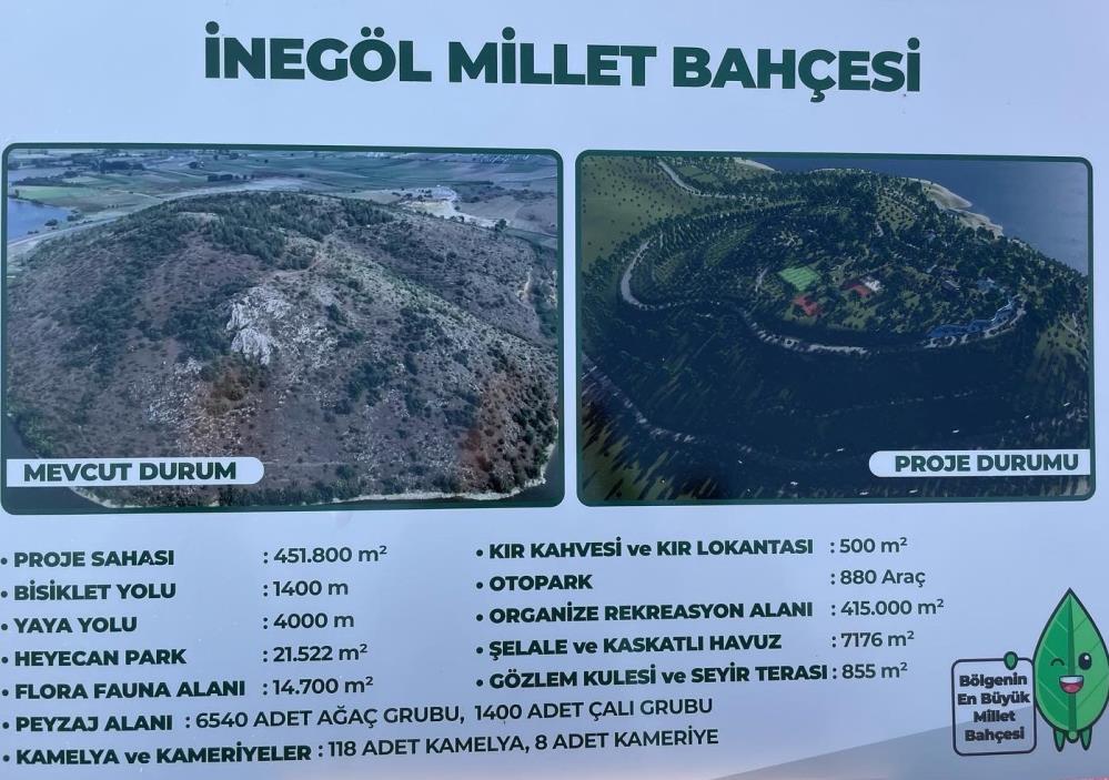 Millet bahçesinde Boğazköy barajında küçük tekne gezintilerinin yapıldığı, 10 kilometrelik yürüyüş ve bisiklet alanlarını kazandırdıklarını kaydeden Başkan Taban, “880 araçlık otopark, 125 kamelya, 4 bin metre yaya yolu, 1400 metre bisiklet yolu, 6540 ağaç grubu ve sosyal donatı alanlarını inşa ediyoruz. 100 milyon liraya mal olacak projenin 2024 yılı başında hizmete açılmasını planlıyoruz. Sadece İnegöllüler değil Yenişehir ve Bursalılara da hizmet verecek. Burası tam anlamıyla bittiğinde bölgenin de çehresi değişmiş olacak” diye konuştu.