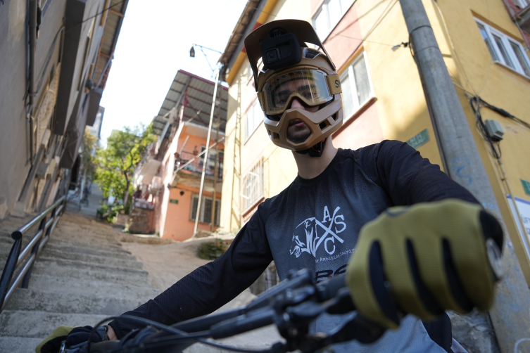 Bursa’da yaşayan Türkiye Downhill Şampiyonu 23 yaşındaki Emir Melik Peker, tepeden inme sporuyla yaklaşık 5 yıldır ilgileniyor. Genç sporcu, yarış ve antrenman yaptığı dağ yollarının yanı sıra şehir merkezindeki birçok yeri parkur gibi kullanıyor.
