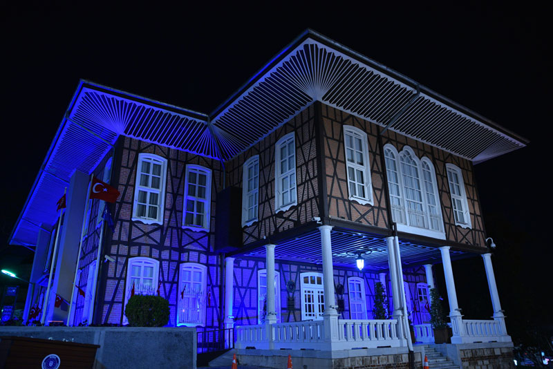 Büyükşehir Belediyesi tarafından tarihi belediye binası ile Tophane’deki saat kulesi mavi ışıkla aydınlatıldı.