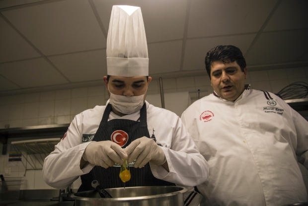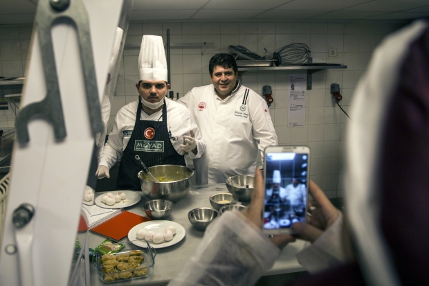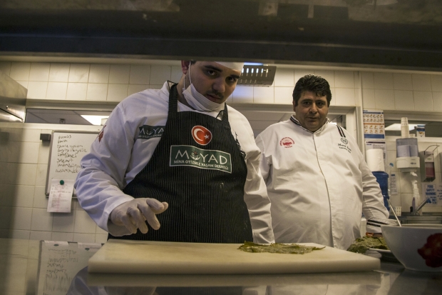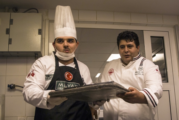 Sheraton Bursa Otel’inde şef aşçısı Murat Eren ile zeytinyağlı yaprak sarma ile trileçe yapan Fermihan Kanberoğlu, Eren’in takdirini kazandı.
