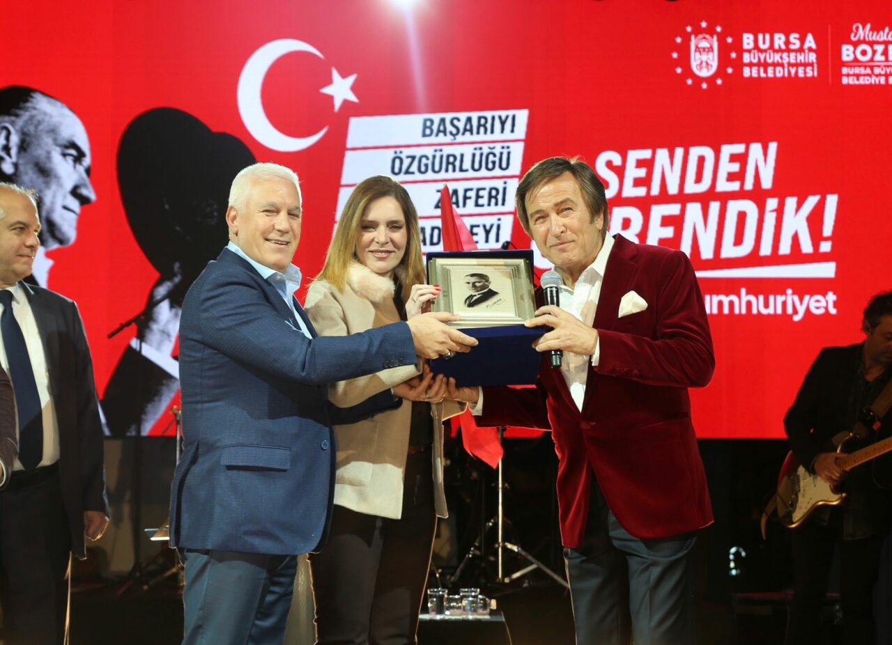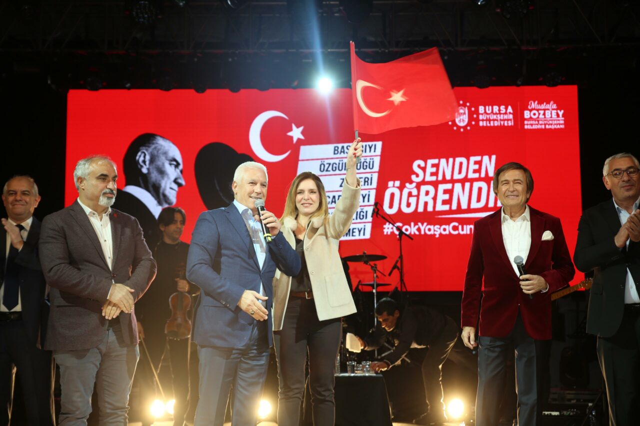 Bursa Büyükşehir Belediye Başkanı Mustafa Bozbey ve eşi Seden Bozbey, ilk olarak İnegöl’de Erol Evgin konserine katılarak Cumhuriyet coşkusunu Bursalılarla paylaştı. Ardından Yıldırım’daki Haluk Levent konserine geçen Başkan Mustafa Bozbey ve eşi Seden Bozbey, sahneye Türk bayraklarıyla çıkarak Cumhuriyet heyecanını vatandaşlarla birlikte yaşadı.