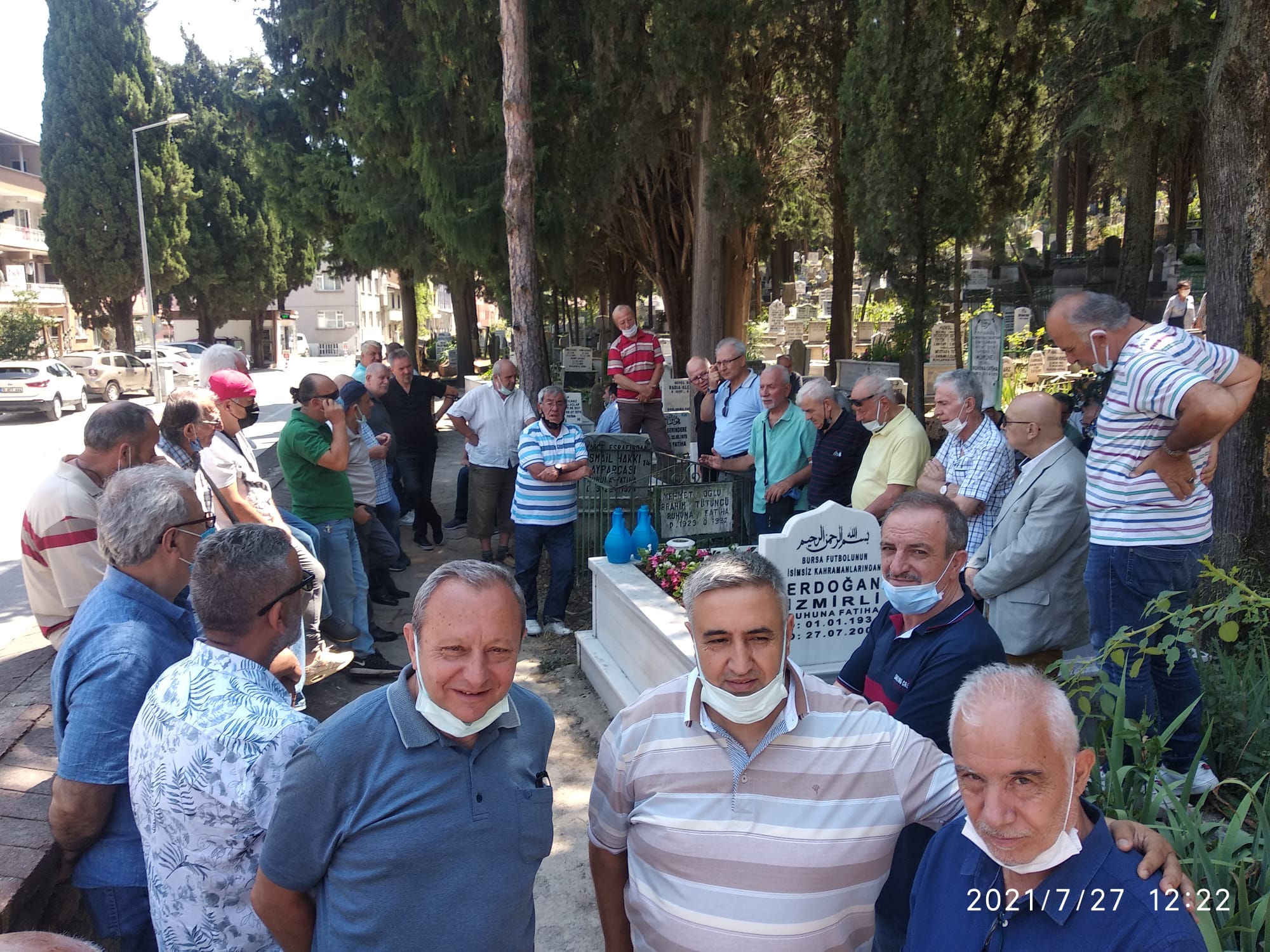 Alacahırka Mezarlığı’ndaki anma törenine Türkiye Futbol Adamları Derneği Bursa Şube Başkanı Ümit Akkuş, Türkiye Futbol Antrenörleri Derneği Bursa Şubesi Yönetim Kurulu Üyesi Serkan Bulut, TÜFAD Bursa Şubesi eski Başkanı Sedat Özbağ, Orhangazi’nin eski Gençlik ve Spor İlçe Müdürü Salih Turgut Mete, Merinos’ta futbol oynamış eski kramponlar, İzmirli’nin dostları katıldı.