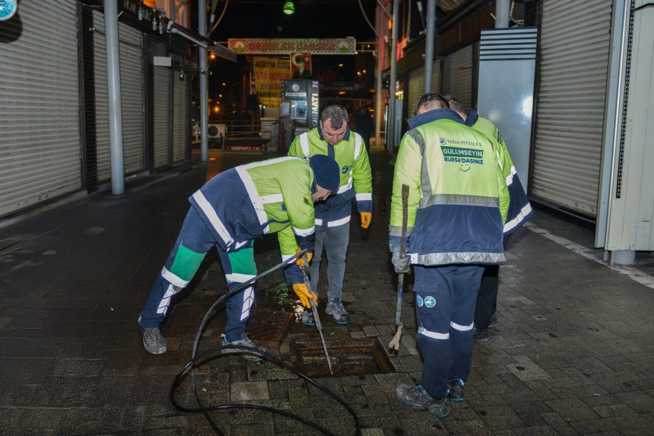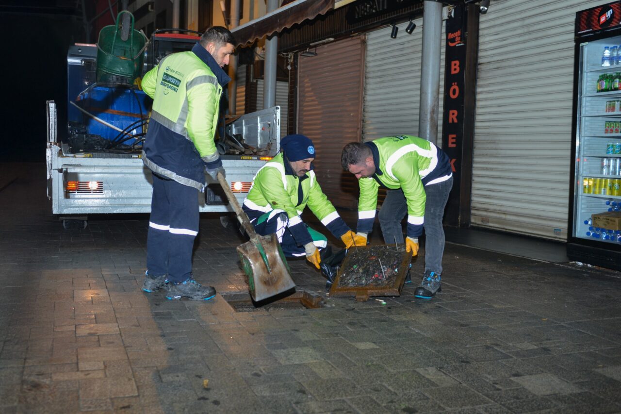 Yaya trafiğinin yoğun olarak yaşandığı Kapalıçarşı bölgesinde gece saatlerinde yoğun mesai harcayan Büyükşehir Belediyesi ekipleri, mazgalları tek tek açarak biriken kâğıt, yaprak, izmarit, kum, taş gibi atık ve yabancı maddeleri topladı.