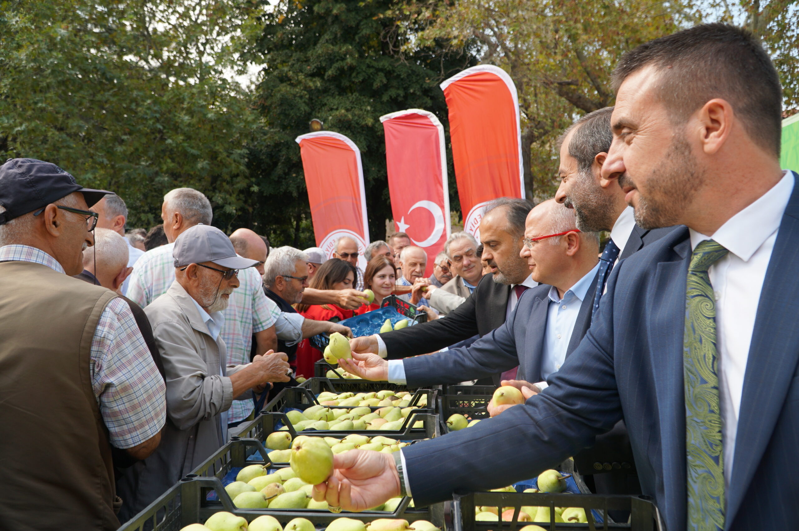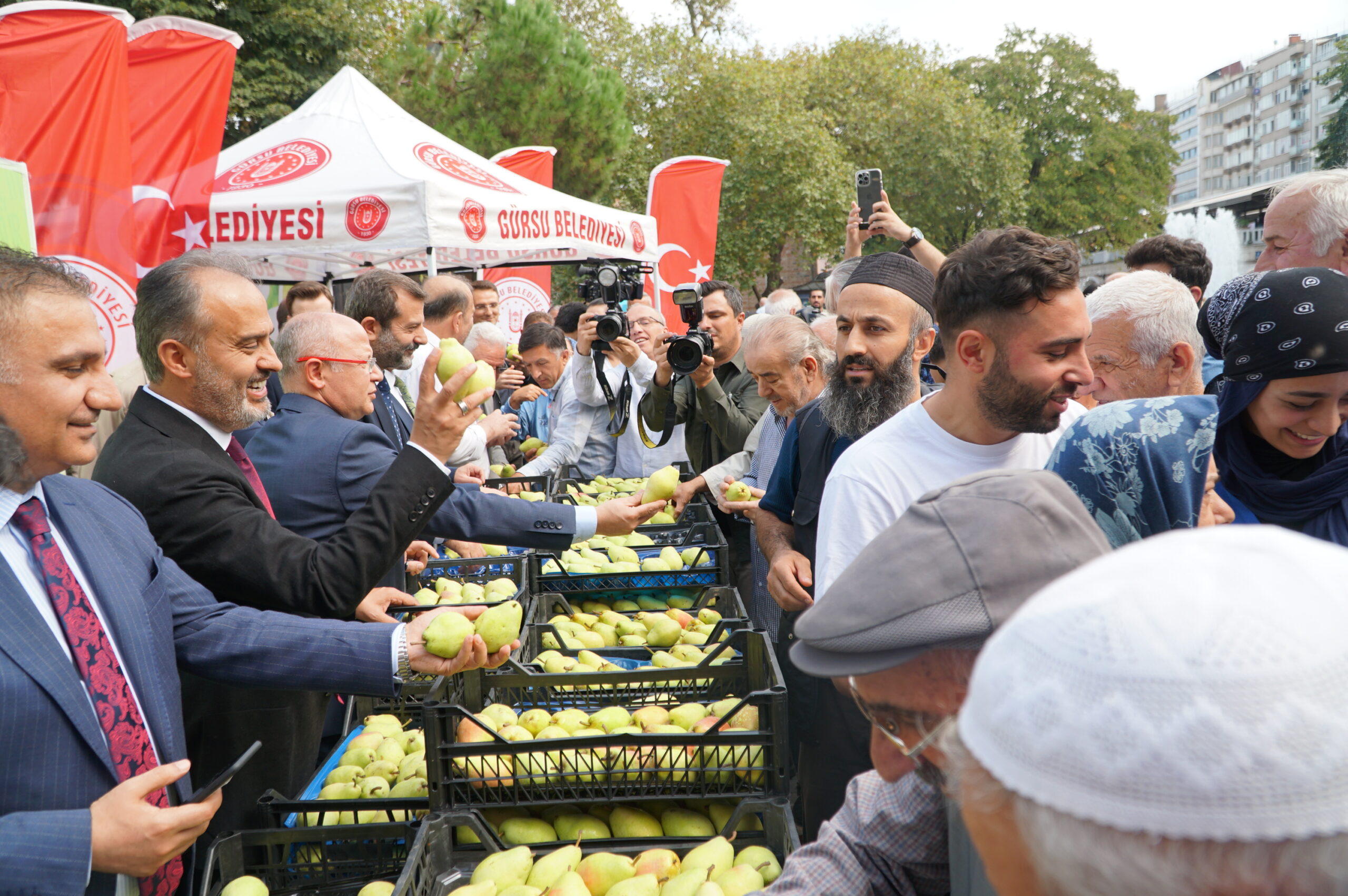 Gürsu Belediye Başkanı Mustafa Işık, dünyanın en verimli toprakları Gürsu Ovası’ndan dünyanın her tarafına armut gönderdiklerini belirterek, “Programımıza, Ulucami’den besmeleyle başladık. Santa Maria armudunun hasadı bitti ve çok bereketli geçti. Şimdi ise Deveci armudunun hasadı başlayacak onun da bereketli geçmesini temenni ediyoruz. Santa Maria özellikle Avrupa ülkelerinden çok fazla talep görüyor” dedi.