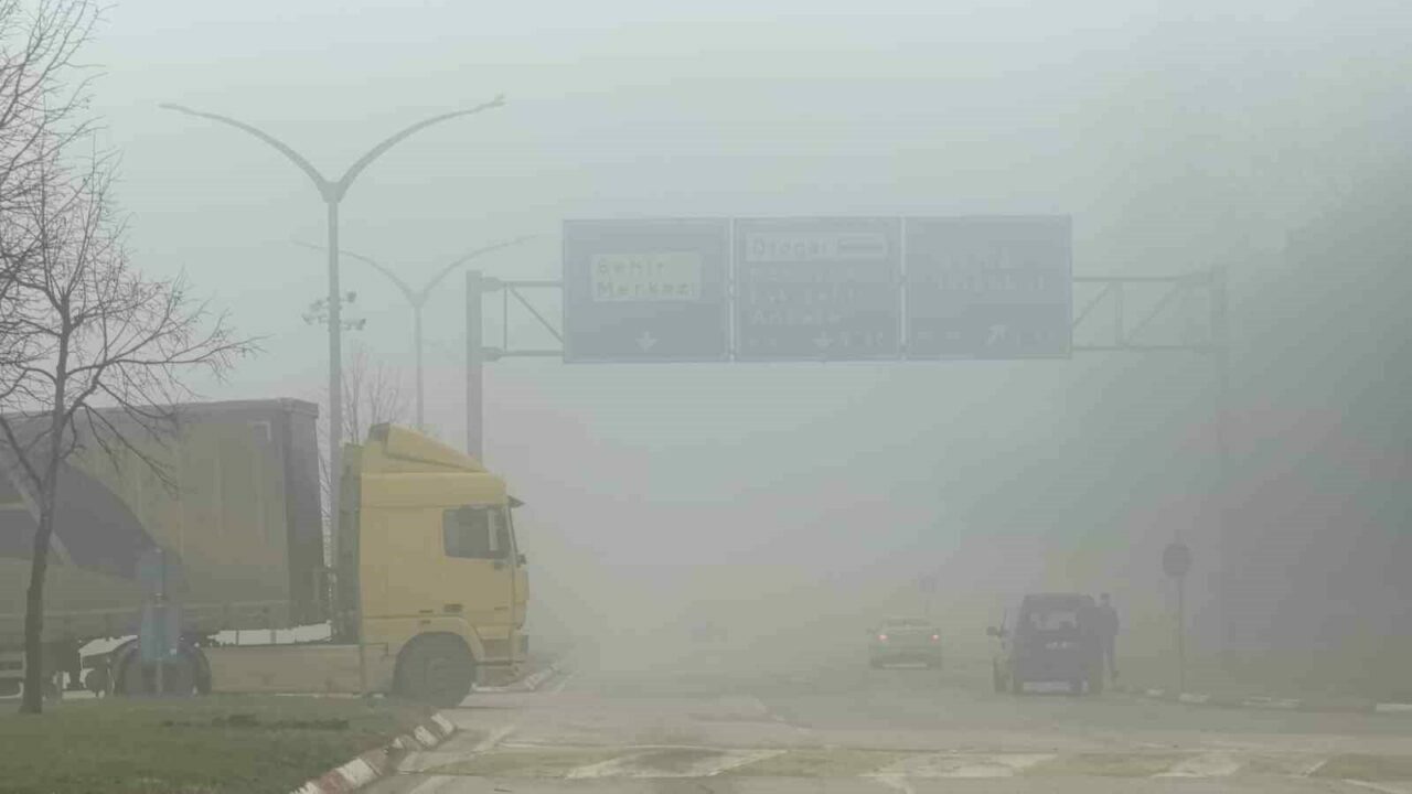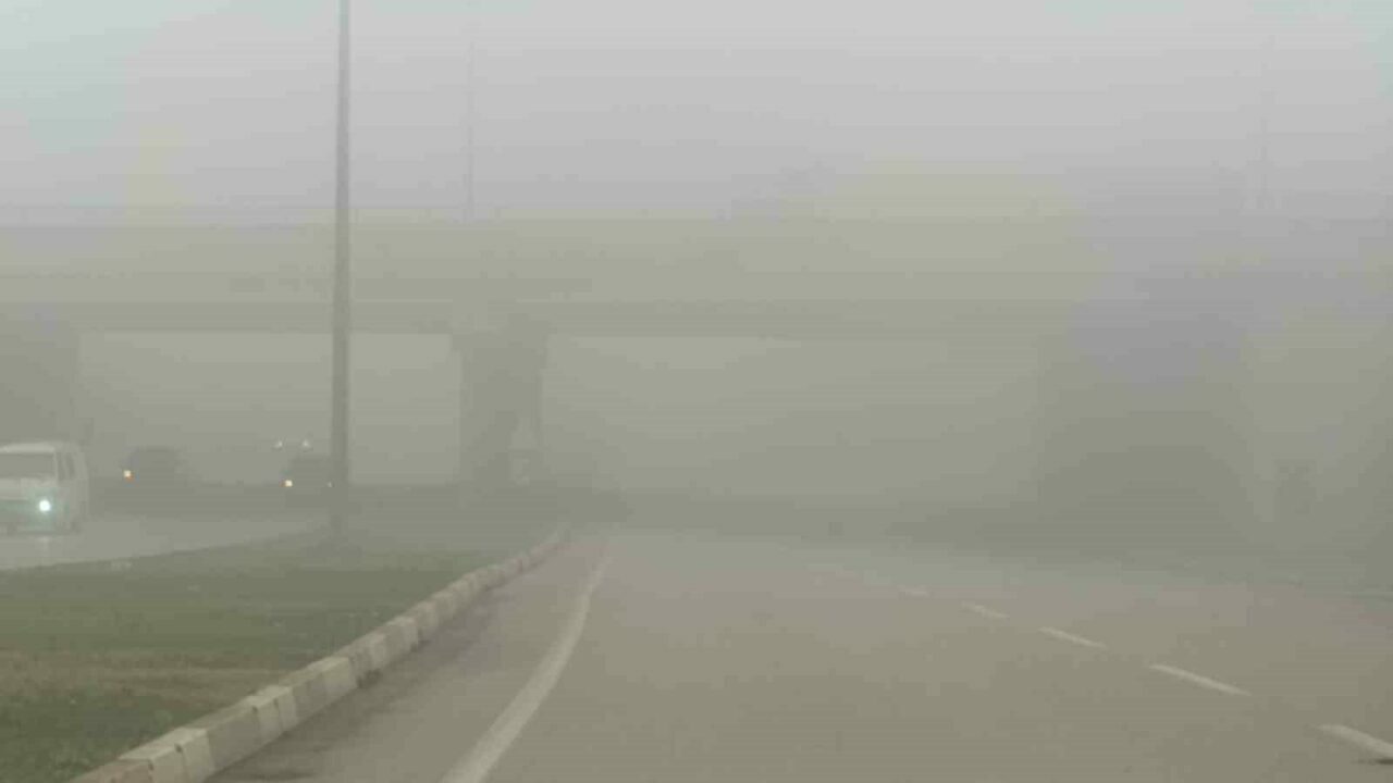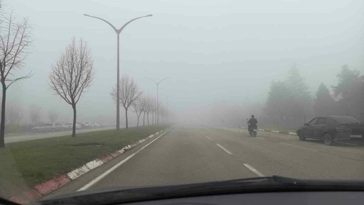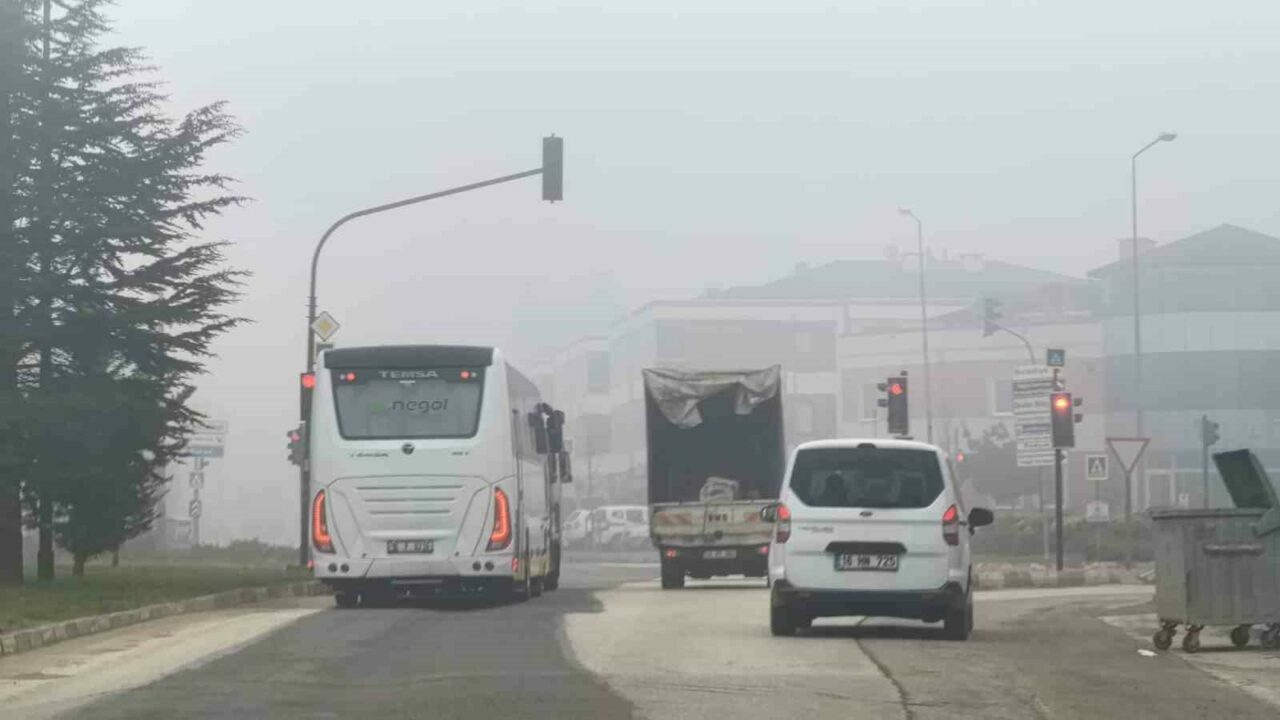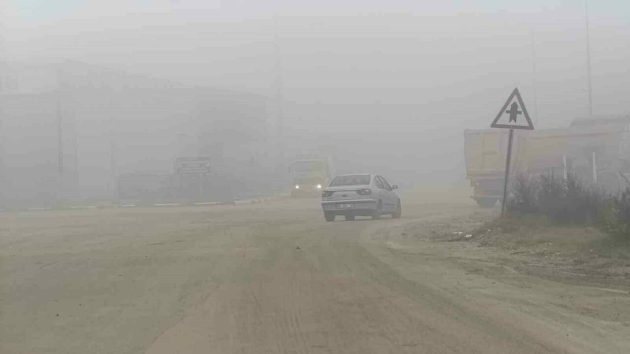 Yoğun siste ilerlemekte güçlük çeken bazı araç sürücüleri dörtlü flaşörlerini yakıp yavaş ilerledi.
