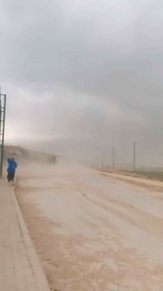 Lodos nedeniyle ilçede toz hortumları oluşurken ilçe genelinde ise toz bulutu oluştu.