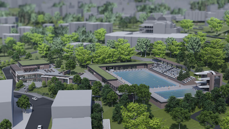 Bursa Gençlik ve Spor İl Müdürlüğü’nün talebi doğrultusunda Büyükşehir Belediyesi tarafından hazırlanan projede, Havuzlupark’ın bulunduğu yaklaşık 30 bin metrekare alan sil baştan yenilenecek. Mevcut yapının yerine daha modern tekniklerle, fonksiyonel olarak daha uygun, kullanıcı kapasitesi arttırılmış, ulusal müsabakaların da düzenlenebileceği standartlarda bir proje tasarlandı. Proje inşaat alanı 8 bin 500 metrekare olan yapı iki blok olarak kurgulandı. Tesisin girişi, mevcuttaki yapı gibi parselin güney tarafından olacak. Ana blok; idari birimler, danışma, bekleme-sergi ve fuaye alanı, spor faaliyetlerinin yürütüleceği idari birimler, seminer odası, otopark ile parka ve tesise hizmet edecek restoran ve servis birimlerinden oluşacak. Diğer blok olan spor bloğunun alt katında soyunma odaları, duşlar, hamam ve sıcak su havuzları ile açık havuzların teknik birimleri yer alacak. Havuz katında ise; FINA standartlara uygun tam olimpik açık bir yüzme havuzu ile yarı olimpik açık bir yüzme havuzu bulunacak. Yarı olimpik havuzun bir kısmının derinliği arttırılarak atlama havuzu olarak da kullanılabilecek. Mevcut atlama kulesinin yerine FINA standartlara uygun 10 metrelik bir atlama platformu planlandı. Açık havuzların kotunda hizmet verecek şekilde spor salonu, ofisler, çok amaçlı bir salon ve kafeterya tasarlandı.