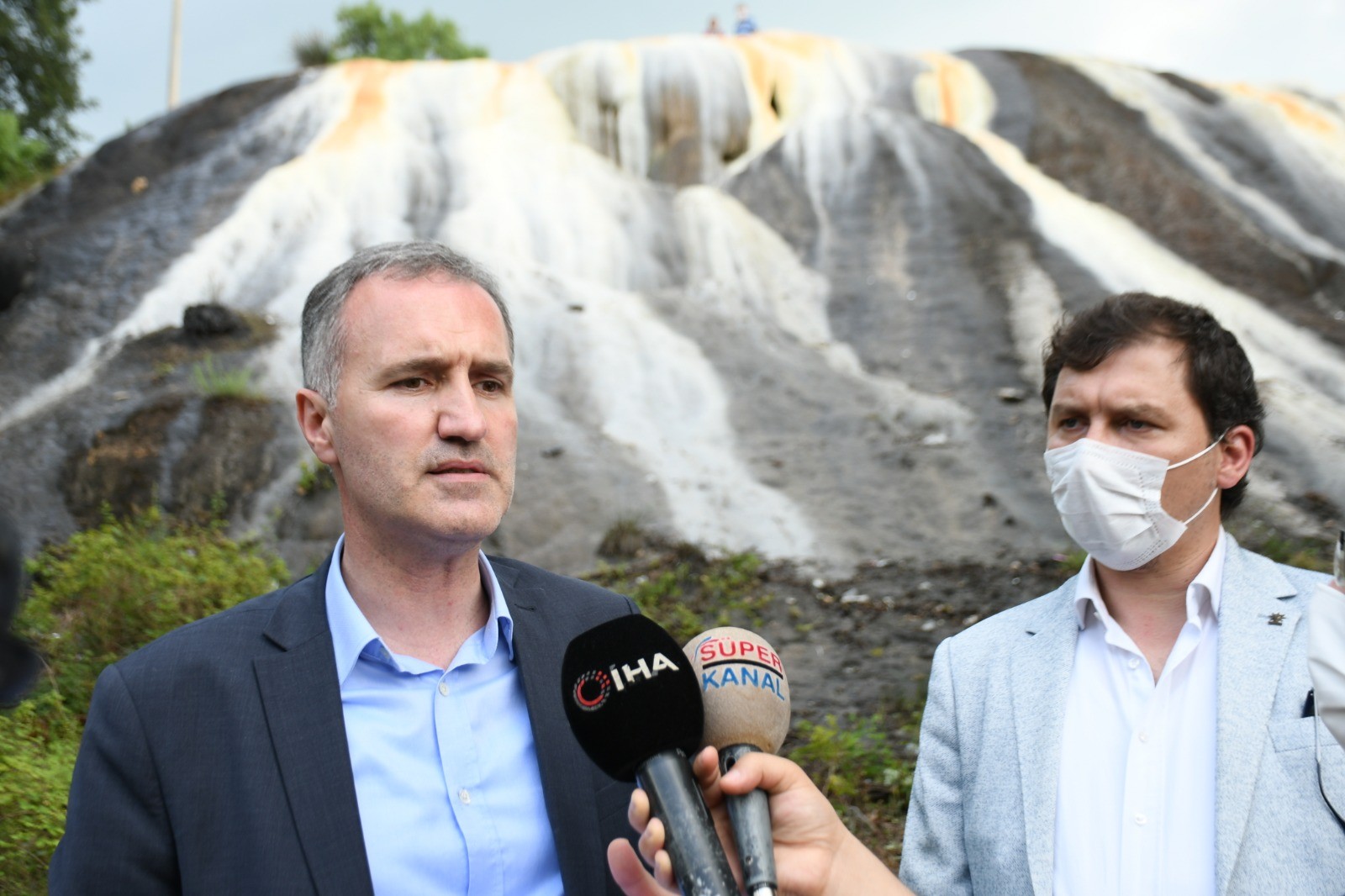 Bir hafta önce kaynak suyu hattının yapılmasıyla su bu bölgede kayaların üzerinde bırakıldı. 1 haftada ciddi bir beyazlama görülürken, Belediye Başkanı Alper Taban da beraberindeki Başkan Yardımcısı Eşref Yiğit, AK Parti İlçe Başkanı Mustafa Durmuş ve Freşa firması yetkilileriyle bölgede incelemelerde bulundu. Burada bir açıklama da yapan Başkan Taban, “Bugün İlçe Başkanımızla, Freşa yetkililerimizle ve çalışma arkadaşlarımızla Kurşunlu’da Bakmaca mevkiindeyiz. Biliyorsunuz çok güzel bir sıcak su kaynağımız var. Firmamız burada vakti zamanında yaptığı çalışmalarda güzel bir kaynak tespit etti. Bu kaynakla ilgili gerekli çalışmaları da yaptı. İnşallah bununla ilgili gelişmeleri de gerçekleştikçe kamuoyunu bilgilendirmeye devam edeceğiz” dedi.