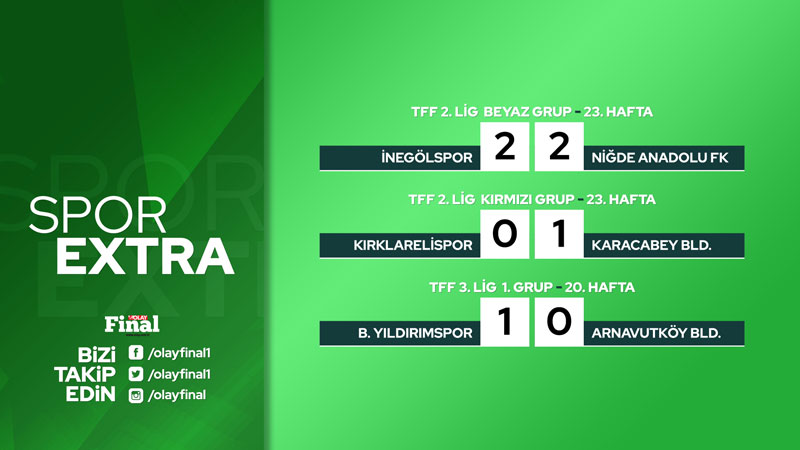 Kırmızı Grup’taki temsilcimiz İnegölspor evinde Niğde Anadolu FK ile 2-2 berabere kaldı. Bu sonuçla puanını 28’e yükselten temsilcimiz, bu haftayı da 12. basamakta tamamladı. Bordo beyazlılar, 24. haftada ise 5 Şubat Cumartesi günü deplasmanda Adıyaman FK ile karşılaşacak.