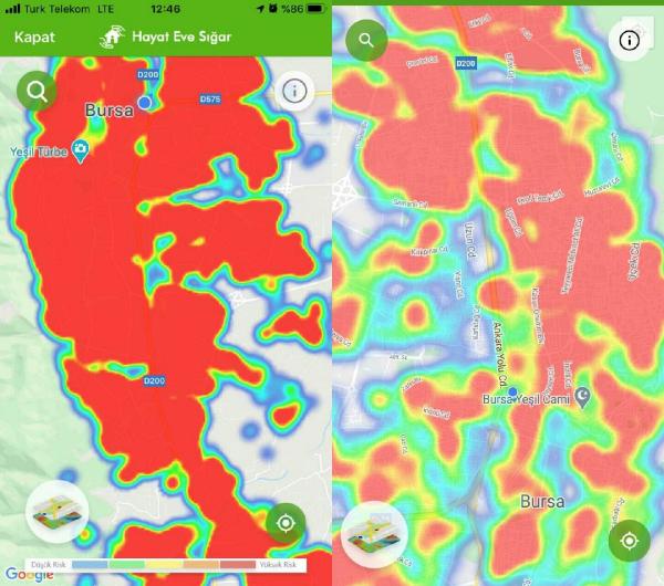 Bursa’da koronavirüs vakaları, son 3 ayda arttı. Vaka sayısındaki artış, HES uygulamasına da yansıdı. Uygulamadan 3 ay önce alınan risk haritası görüntüleri ile kasımın risk haritası görüntüleri arasında büyük fark olduğu görüldü.