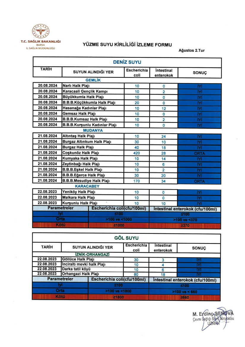 Bursa sahillerinde ağustos ayı ikinci tur sonuçları açıklandı.