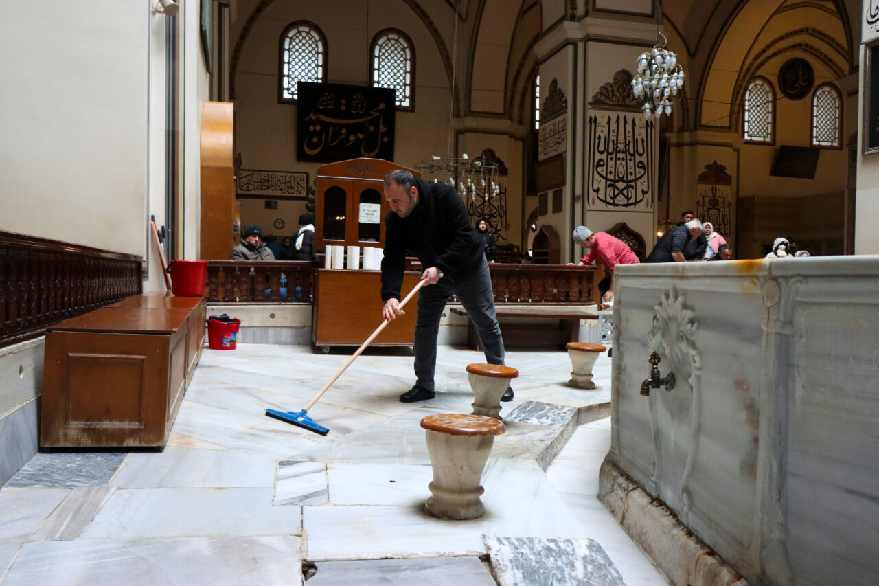 Camide günde 3 defa koku giderici kullanıldığını belirten Şanlı, “Ramazana has olmak üzere büyük bir çapta temizlik yapılıyor. Gül suyu ve koku giderici sürekli atılmak suretiyle buradaki insanımızın rahat bir şekilde ibadet yapması sağlanıyor. Temizlik için derneğimize ait 15 çalışanımız var. Sabahın ilk saatlerinde göreve gelirler, sabah namazıyla temizlik yaparlar. Öğle namazı kılındıktan sonra temizlik olur. İkindi namazından sonra da temizlik yapılır ve sonrada bir arkadaşımız kalarak yatsı namazı bitinceye kadar buradaki temizlik ve diğer hizmetlere devam ederler.” diye konuştu.
