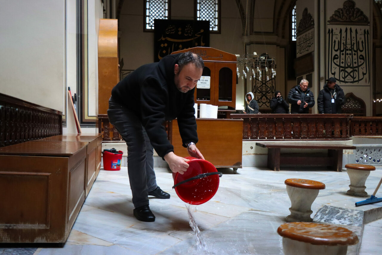 Yerli ve yabancı birçok turistin ziyaret ettiği Ulu Cami, ramazan aylarında daha çok ilgi görüyor. Bursa’nın simgeleri arasında bulunan tarihi cami, ramazana kısa süre kala gül suyuyla yıkanıyor.