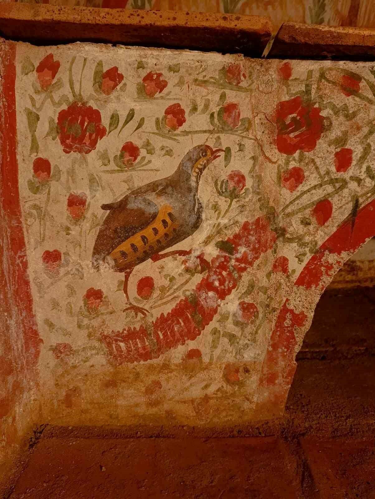 Mezarın kuzey duvarına bitişik klinein pişmiş toprak kare levhalarla kaplı olduğu, ölülerin bu levhaların üzerine yatırıldığı belirlendi. Klinein ardındaki kuzey duvarında ise nadir görülen ’Çoban İsa’ figürü dikkat çekti.